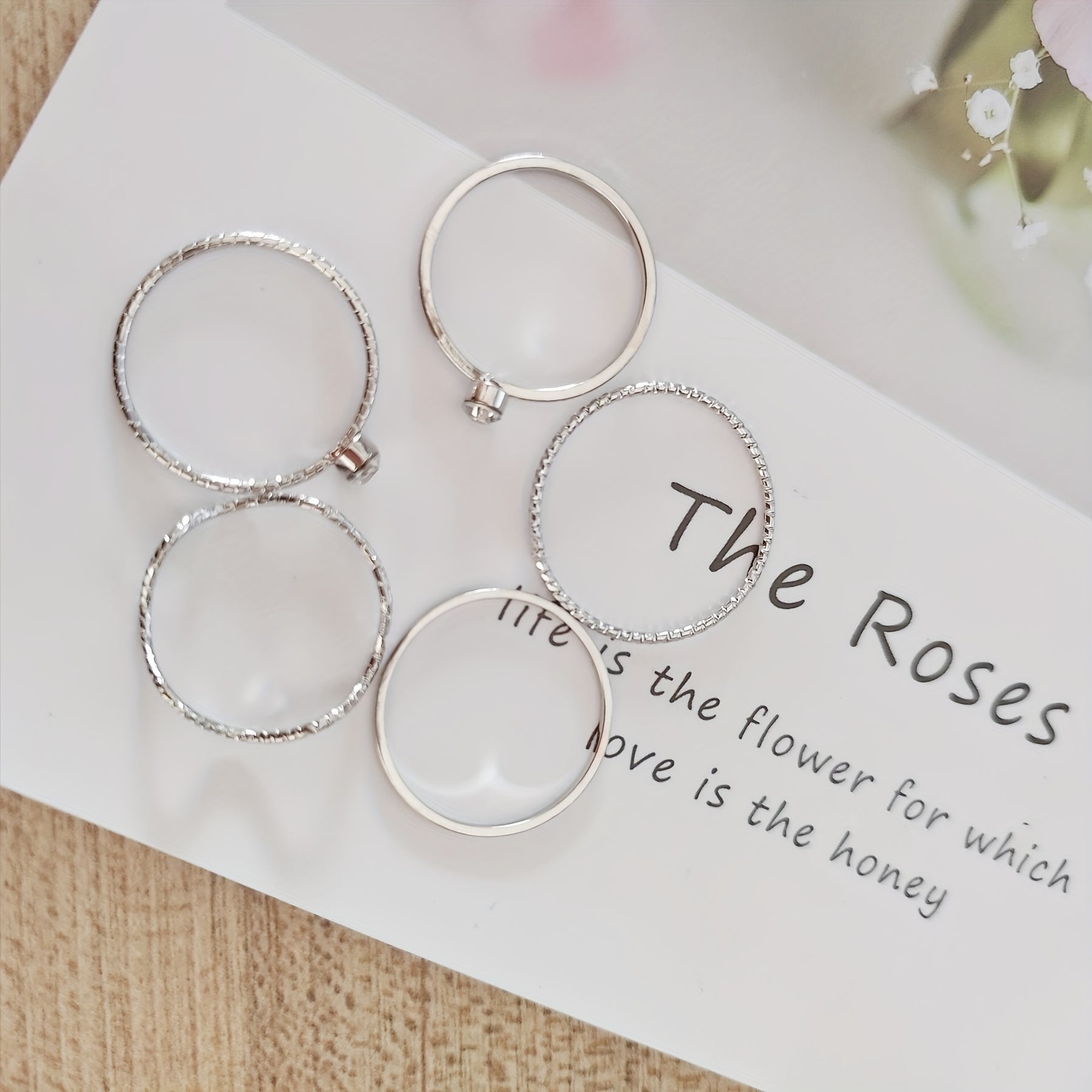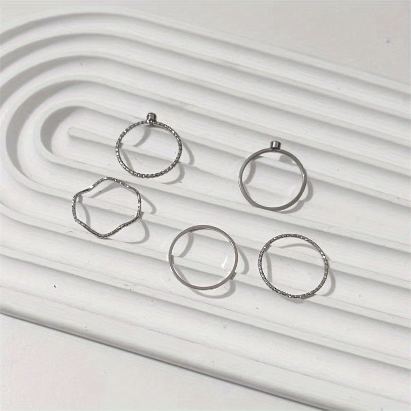 Enhance your daily outfits with this 5-piece Kpop ring set. Made of silver-plated zinc alloy, these rings are perfect for parties and other occasions.