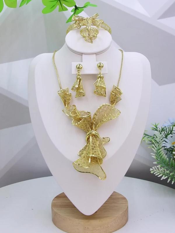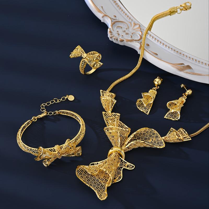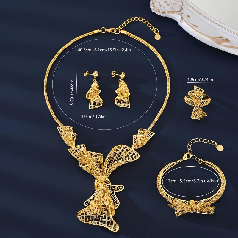Complete your bridal look with this luxurious 18k gold-plated jewelry set. Perfect for weddings and special occasions.
