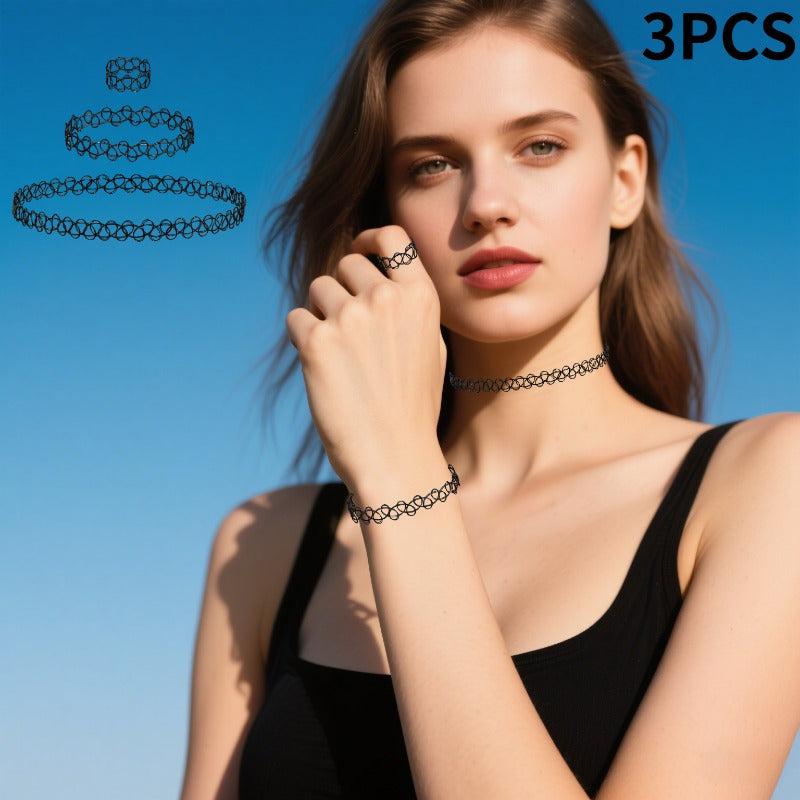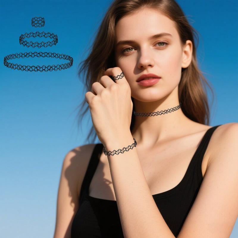 Complete your look with this 5-piece set of stretchy hollow chain jewelry including necklace, bracelet, and ring. Perfect for daily wear or parties, these accessories are a blend of classic and punk style.