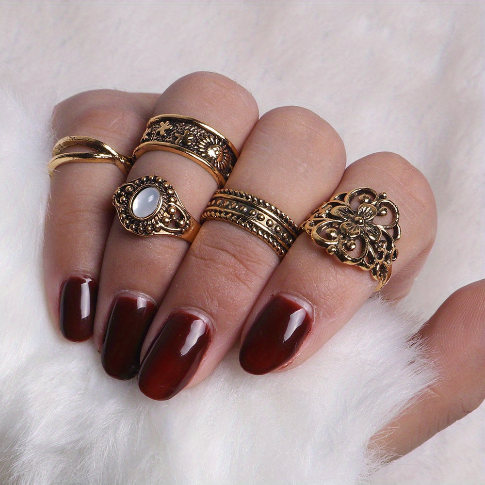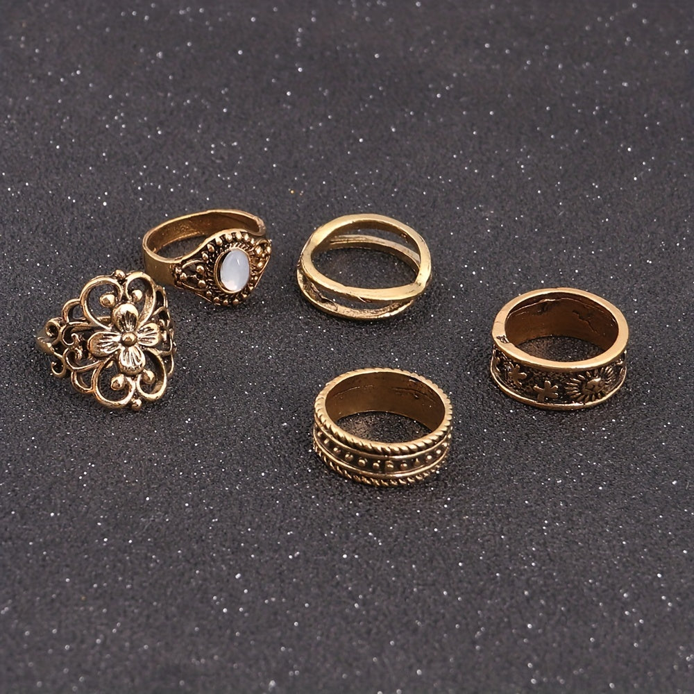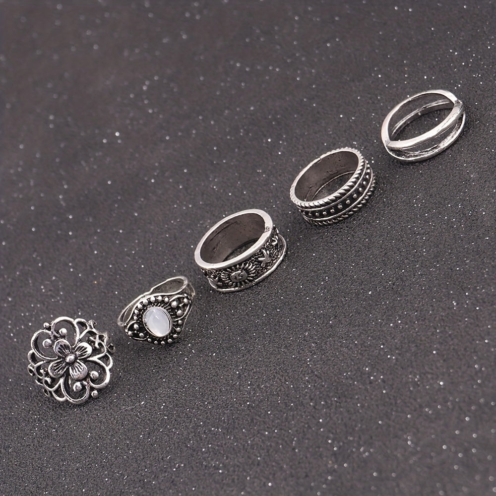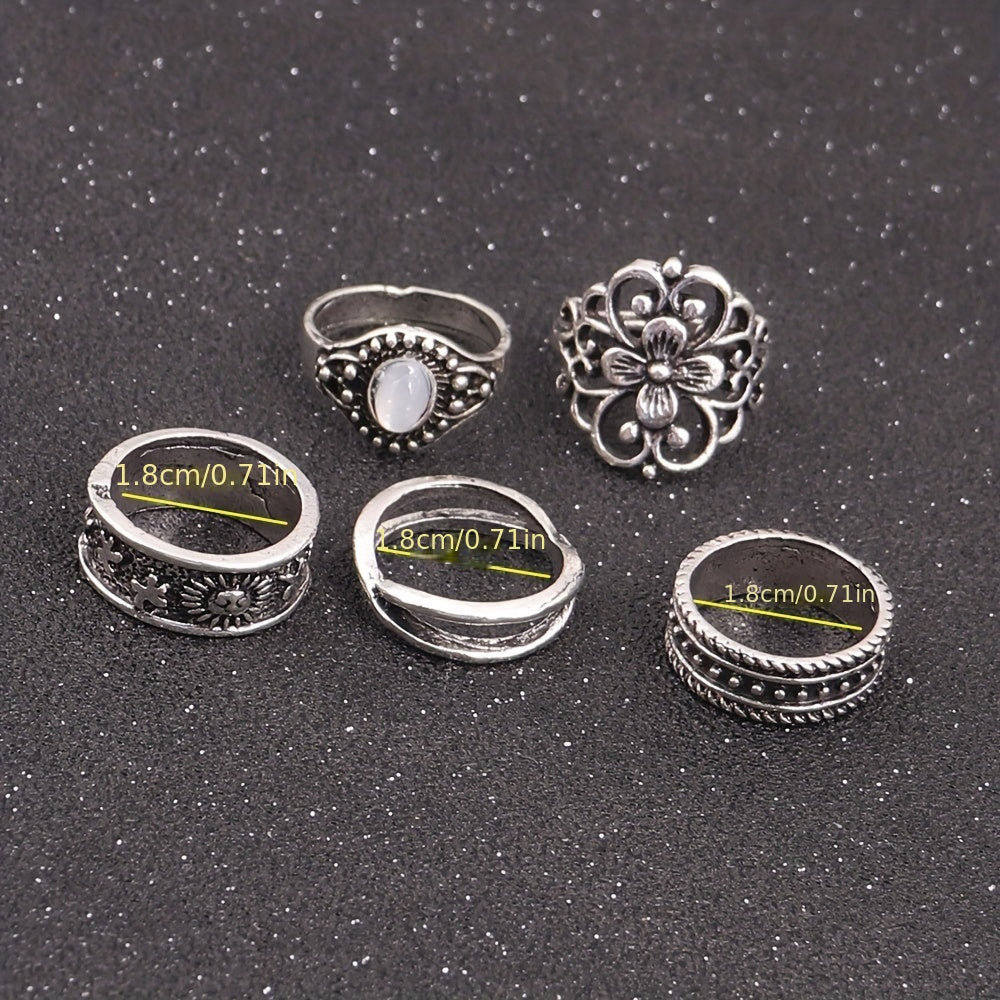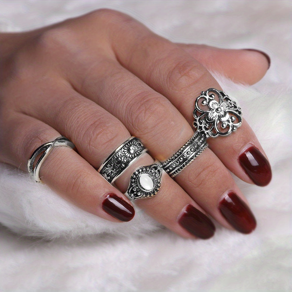 Elevate your style with this vintage stacking ring set featuring cross and flower designs. The rings are perfect for daily outfits and party accessories.
