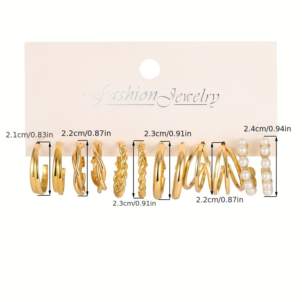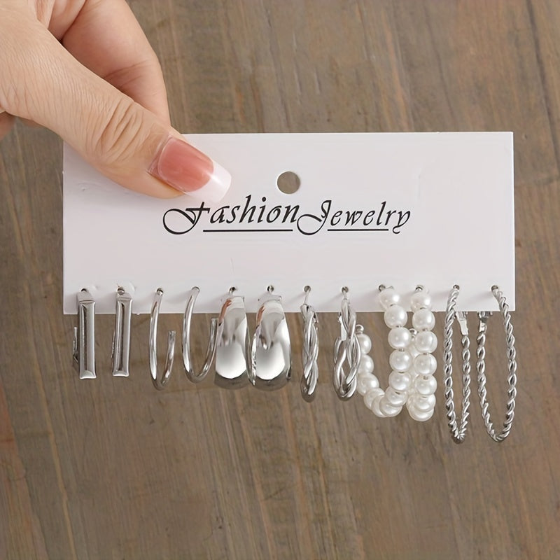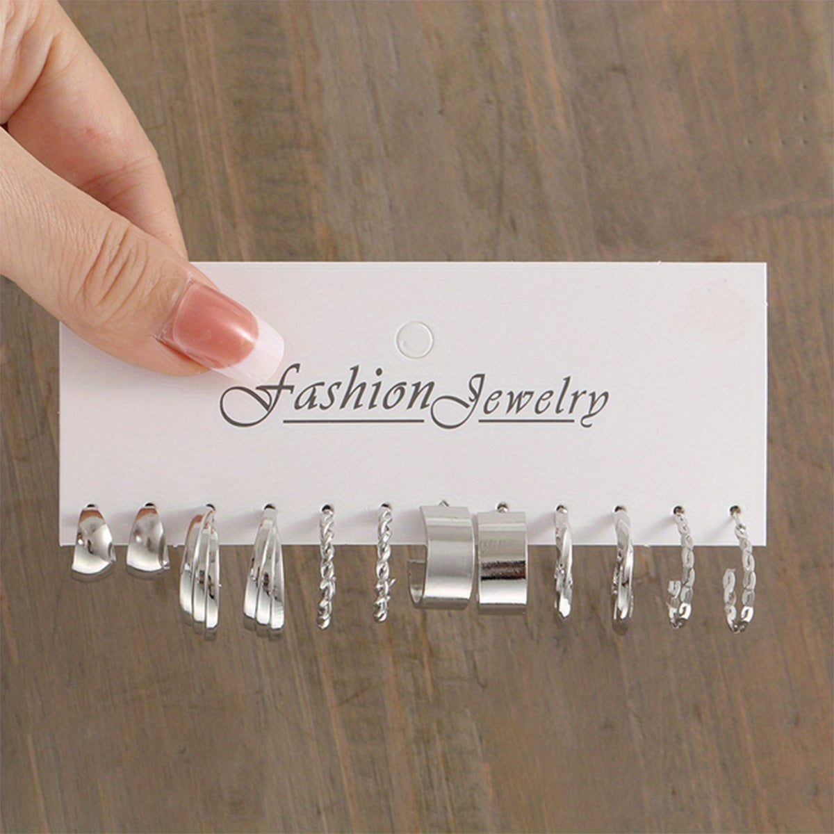 Add a trendy twist to your look with these chunky geometric hoop earrings. This set includes 6 pairs of unique twisted designs to complement any outfit.