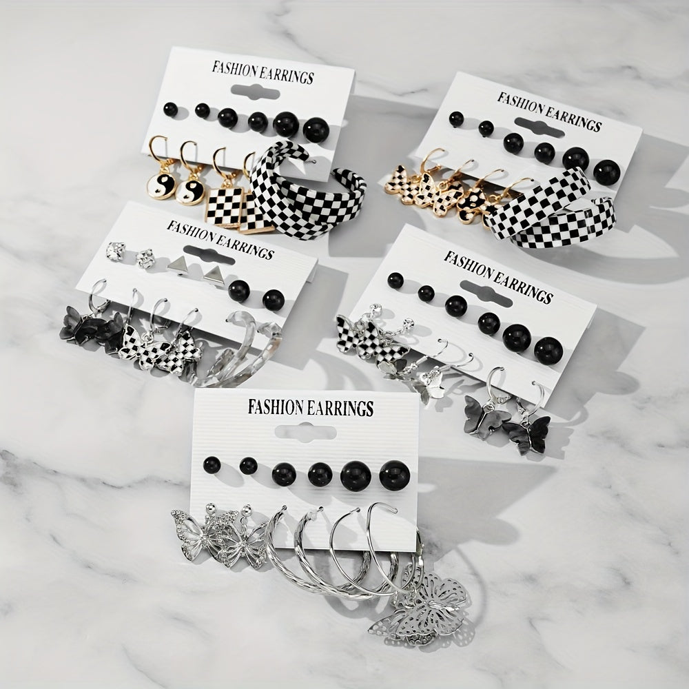 Get this set of 6 pairs of earrings featuring stud and dangle styles with a retro plaid pattern. Perfect gift for women who love classic and vintage accessories.