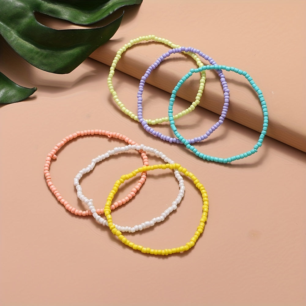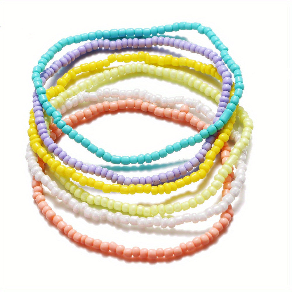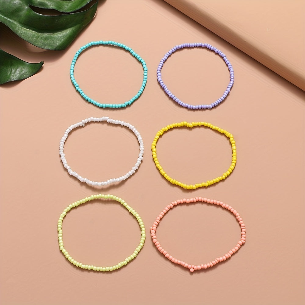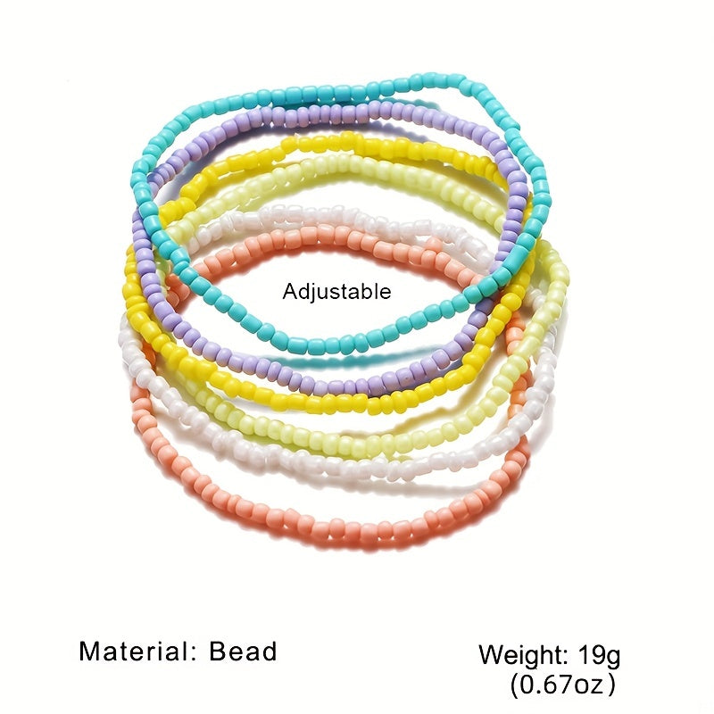 Add a touch of boho style to your summer outfit with this colorful beaded anklet set. Perfect for the beach or casual wear, this set includes 6 unique designs to mix and match.
