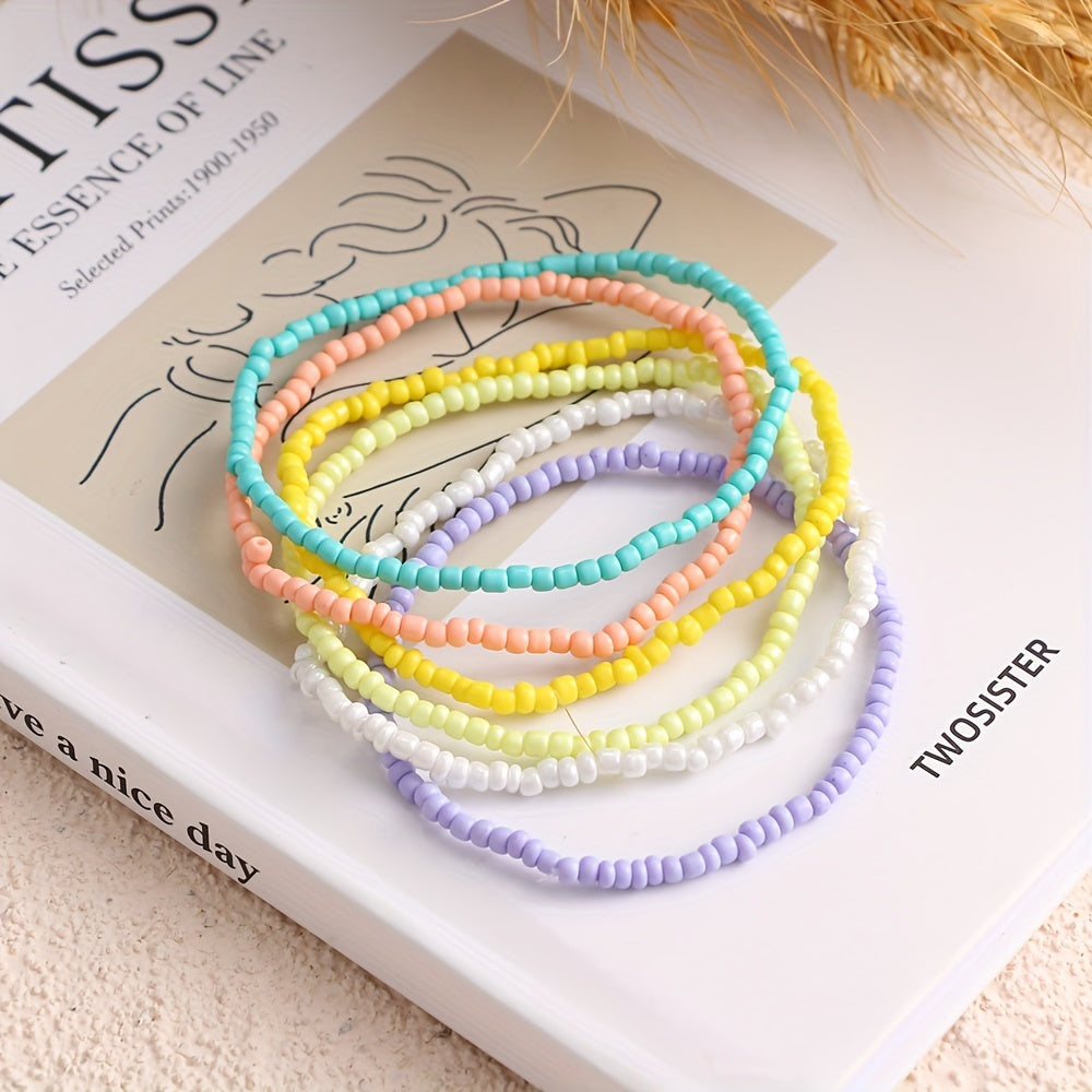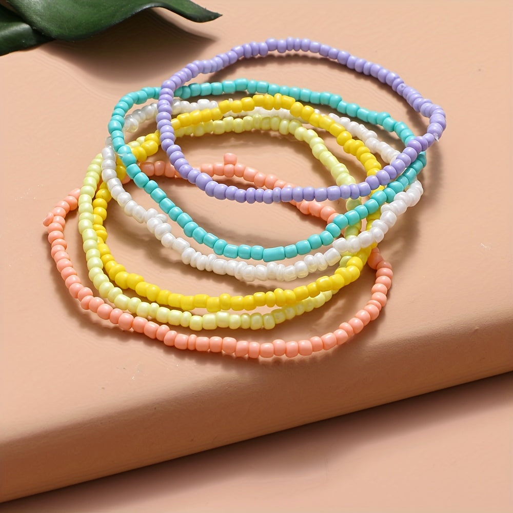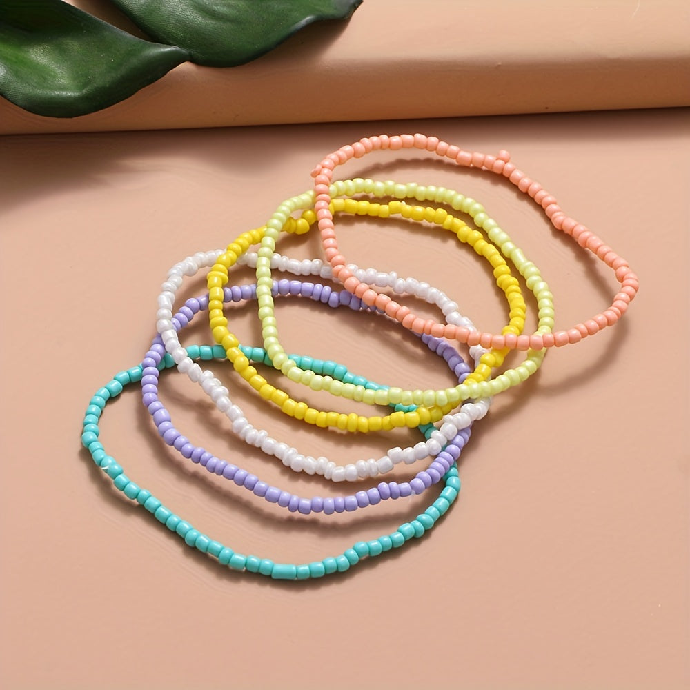 Add a touch of boho style to your summer outfit with this colorful beaded anklet set. Perfect for the beach or casual wear, this set includes 6 unique designs to mix and match.