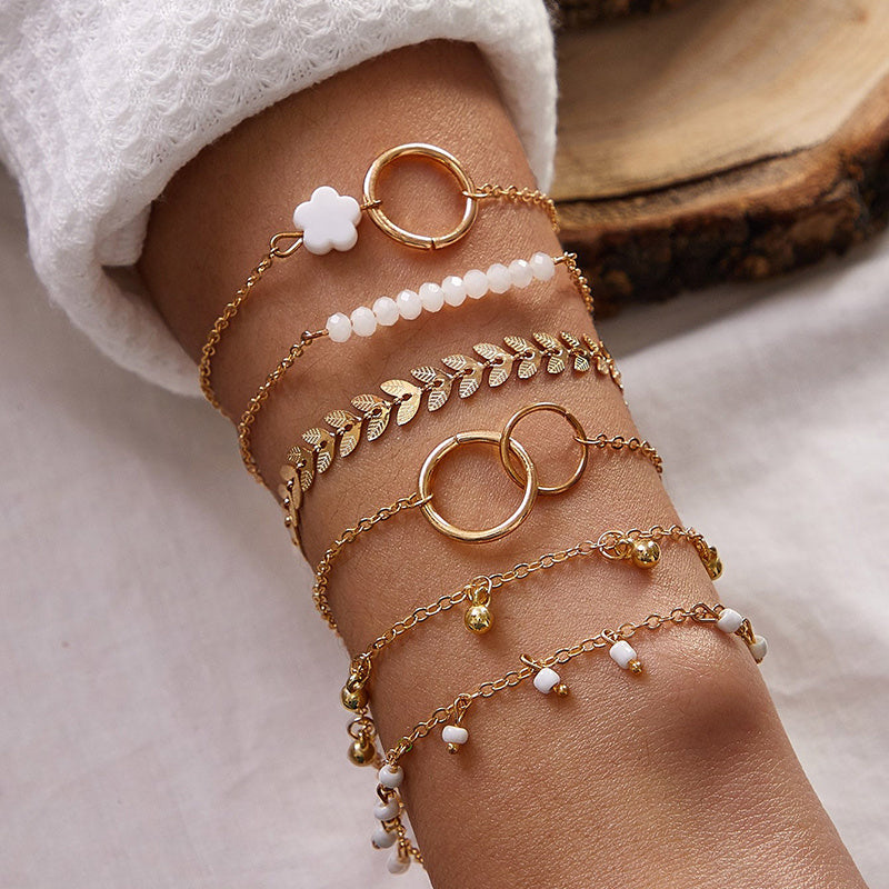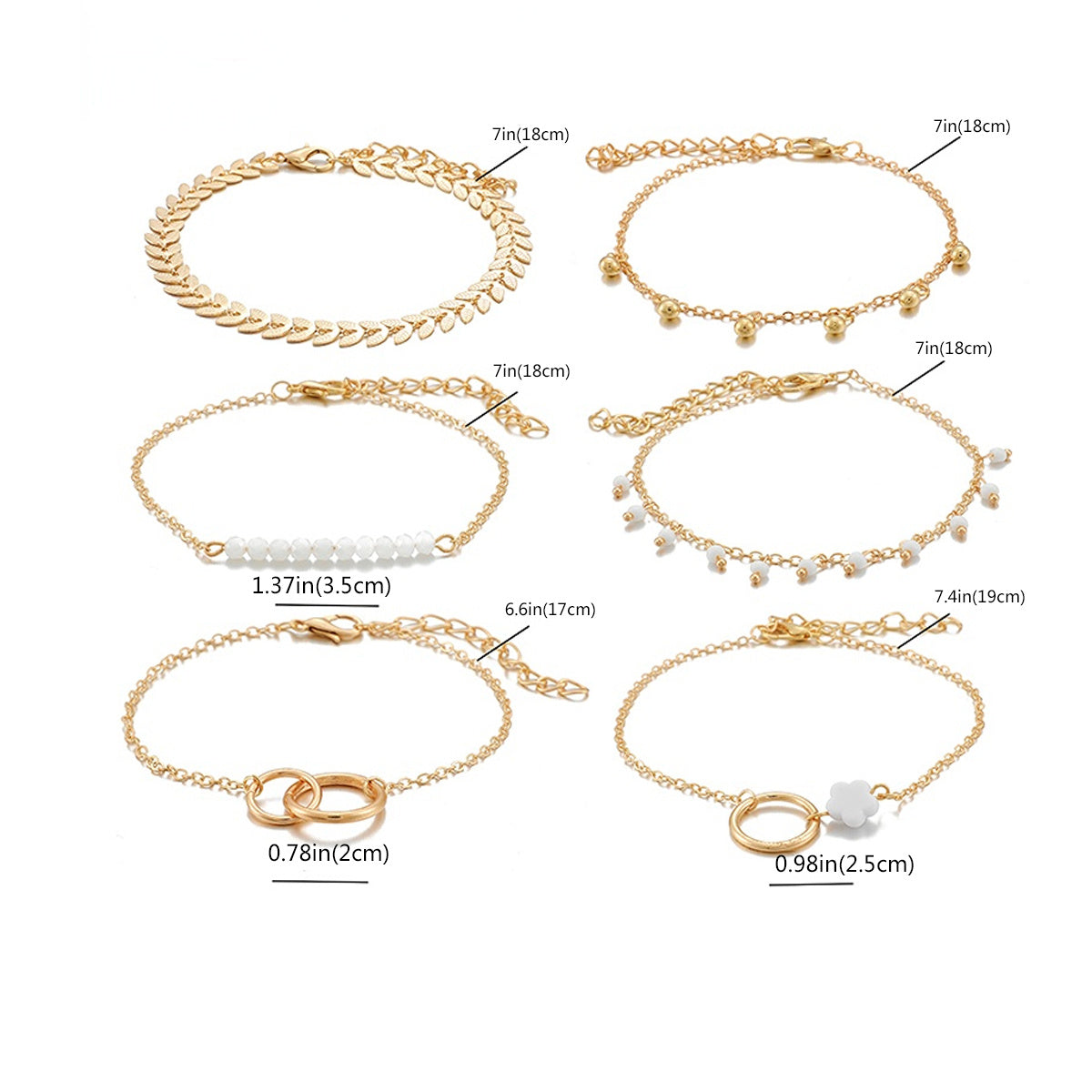 Elevate your accessory game with this set of 6 stackable chain bracelets featuring a hollow out geometric design. These adjustable bracelets add a touch of elegance and style to any outfit.