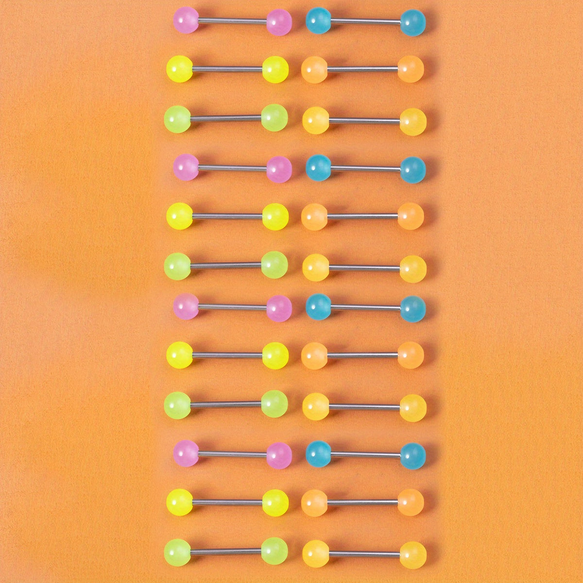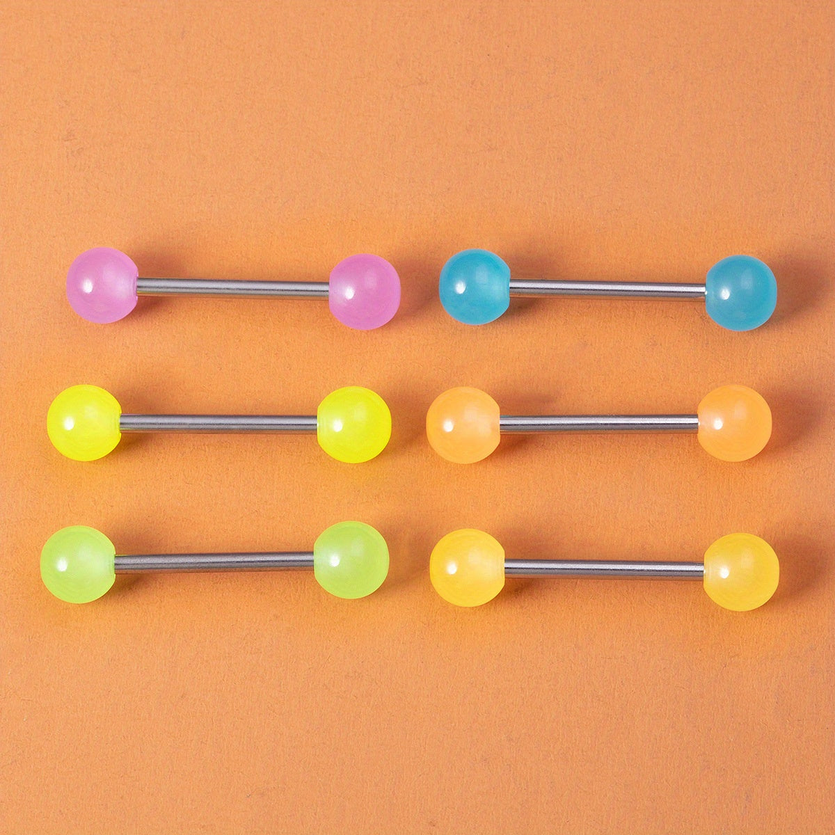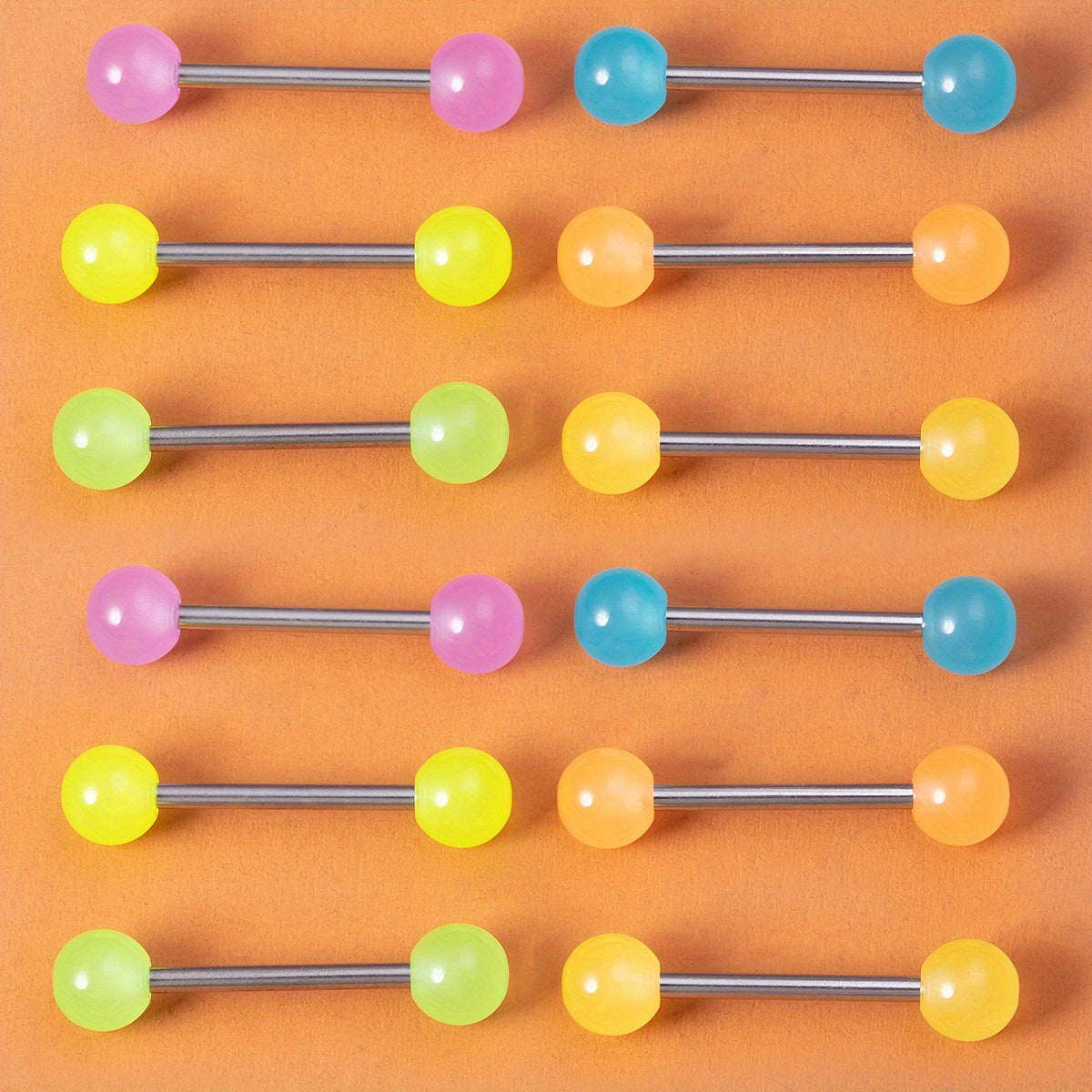 Get noticed with these glow-in-the-dark tongue rings. Made from stainless steel and acrylic, these barbell studs are perfect for both men and women.