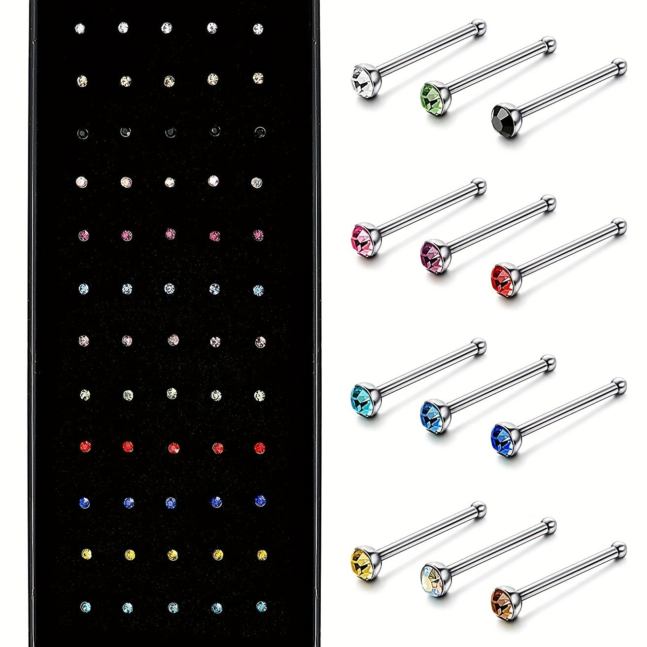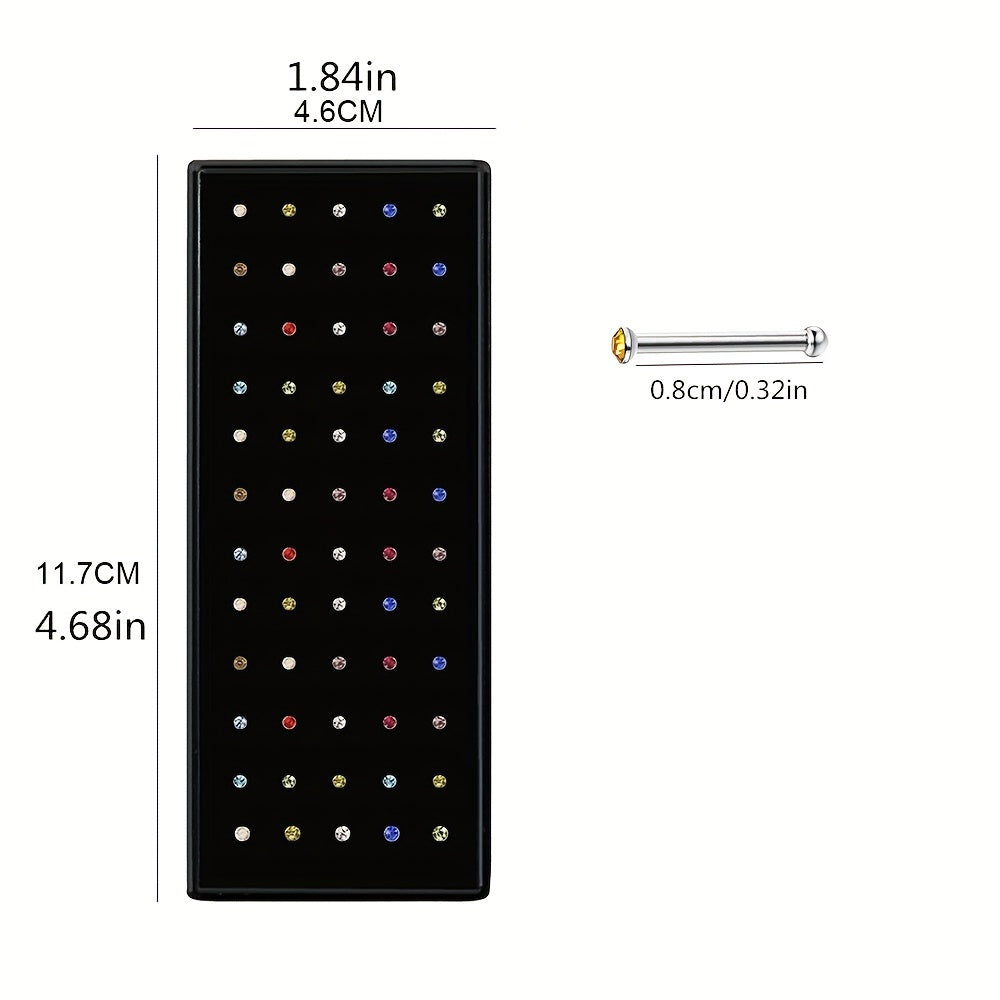 60pcs Stainless Steel Nose Stud Ring Set Body Piercing Jewelry