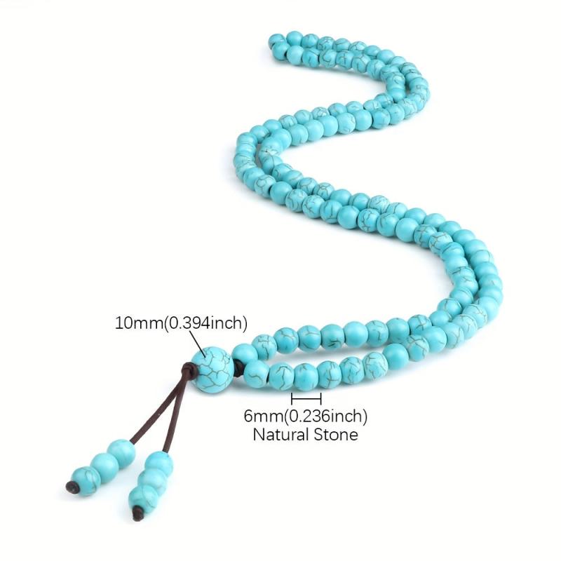 Add a touch of understated elegance to your look with this 6mm natural stone 108 bead necklace. Perfect for daily wear or vacation outfits, this unisex jewelry is versatile and stylish.