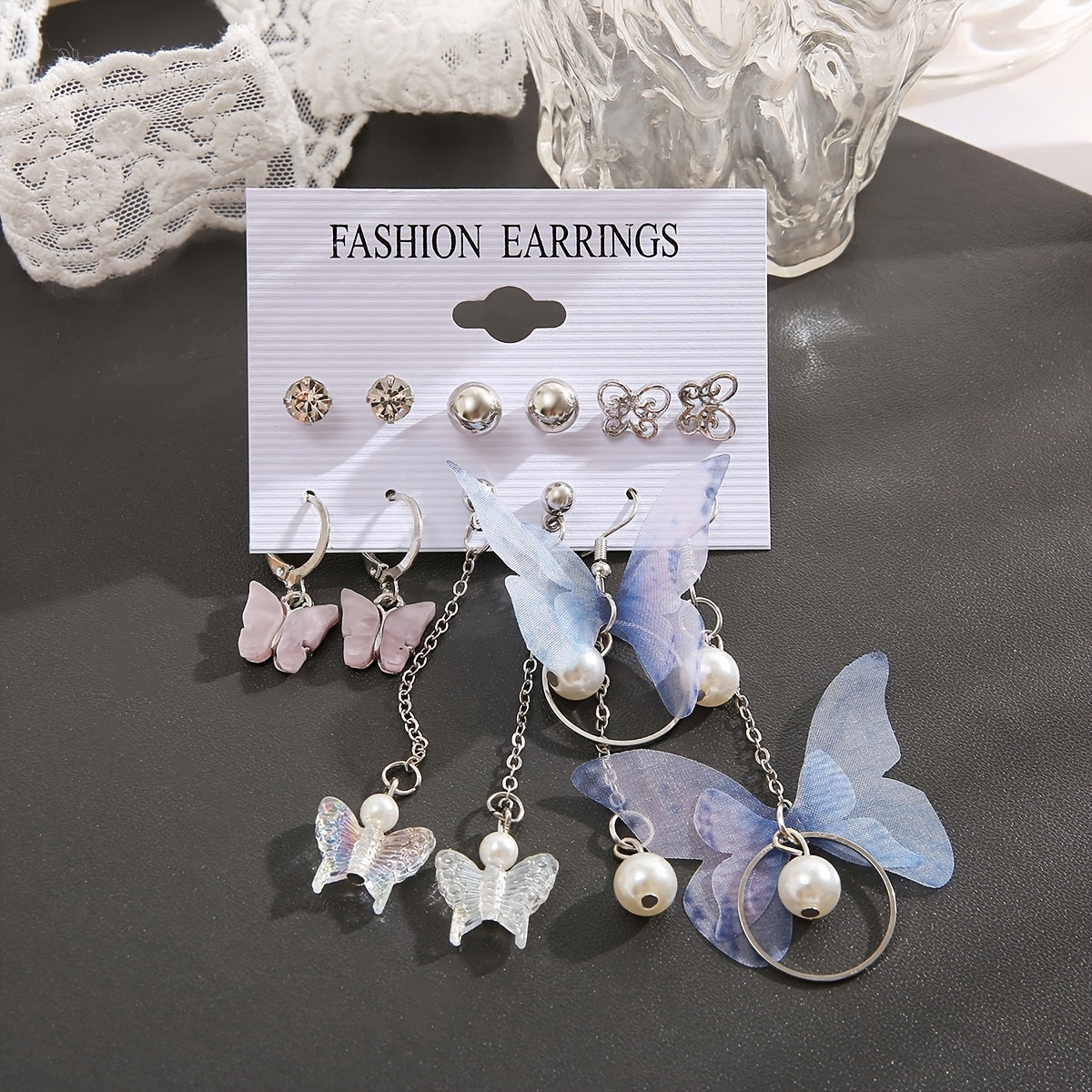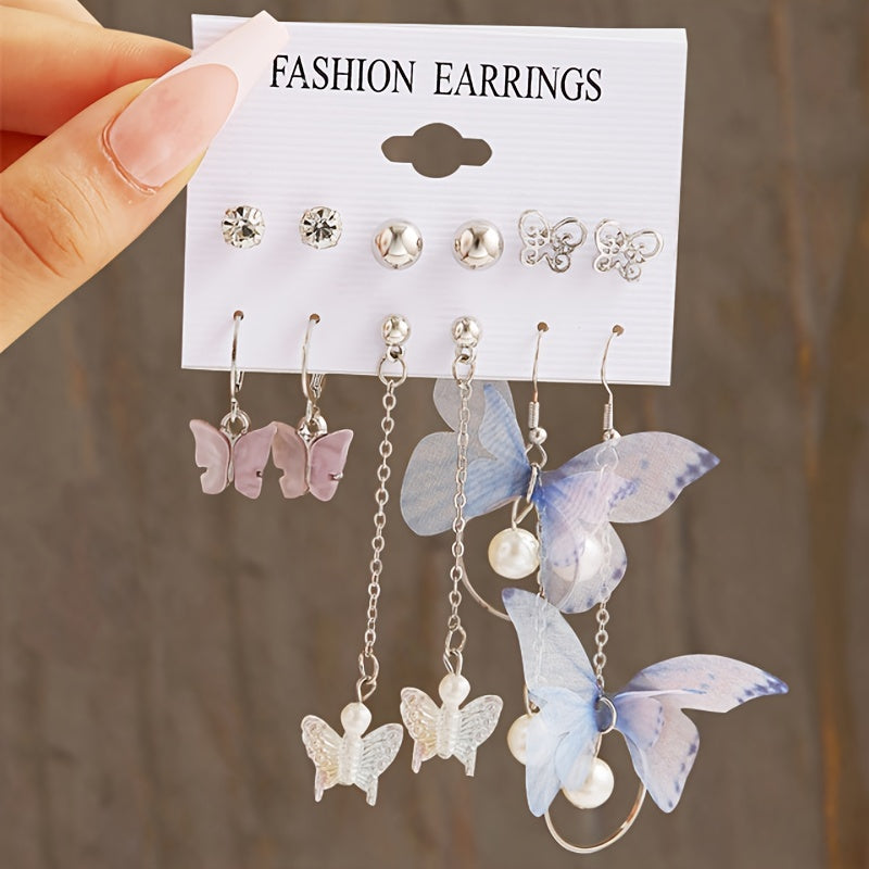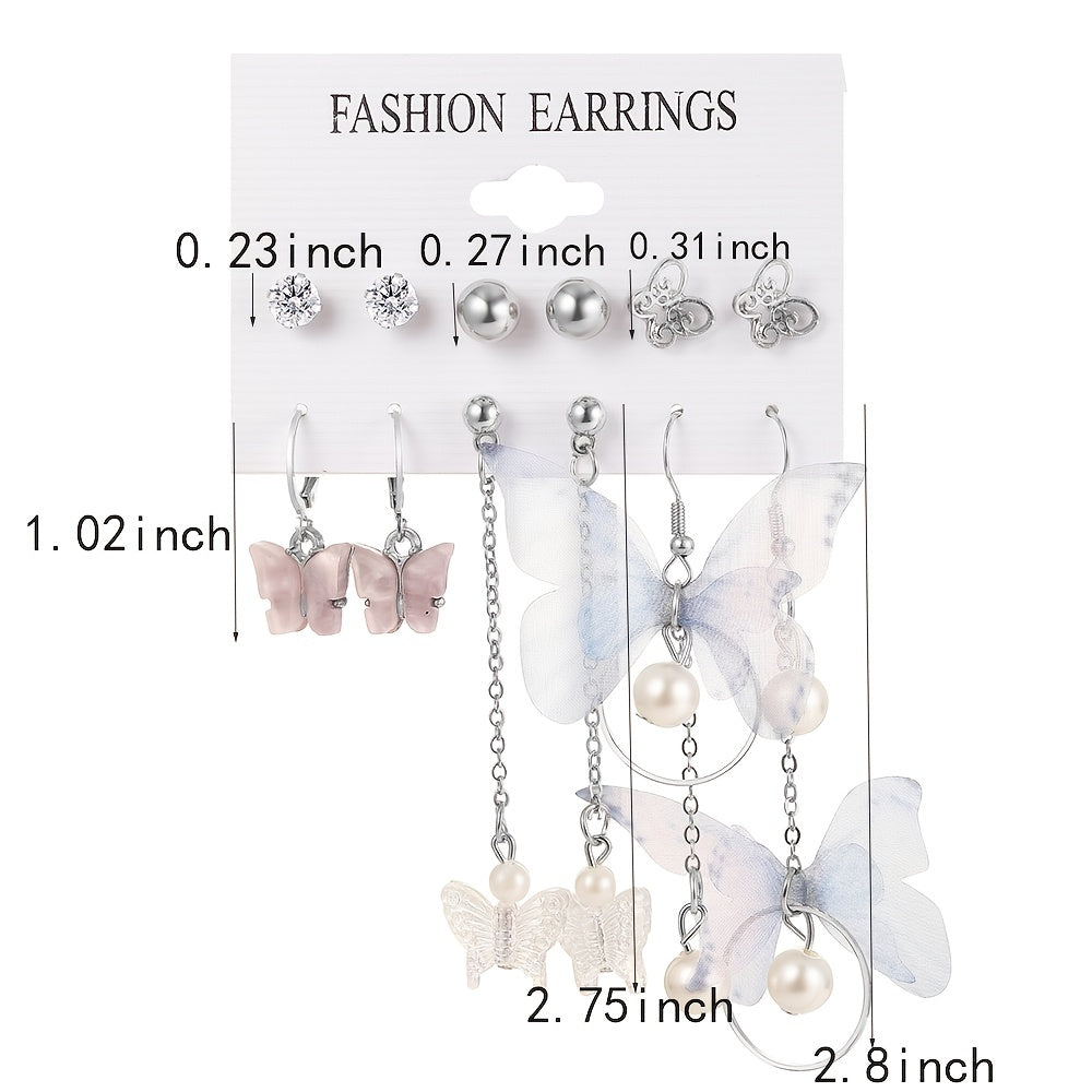 6Pairs Asymmetric Butterfly Faux Pearl Dangle Earrings Set