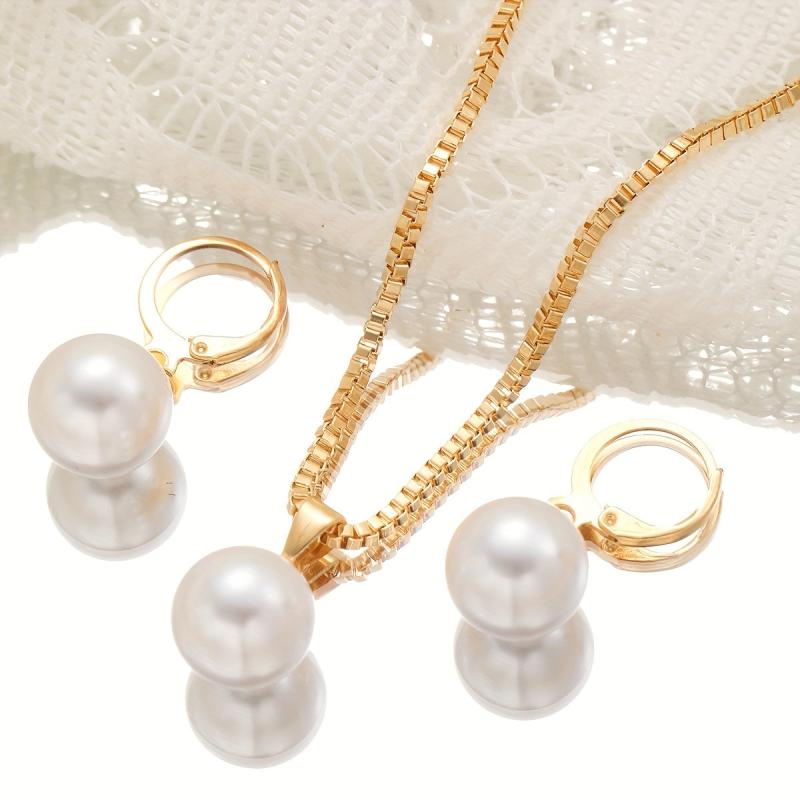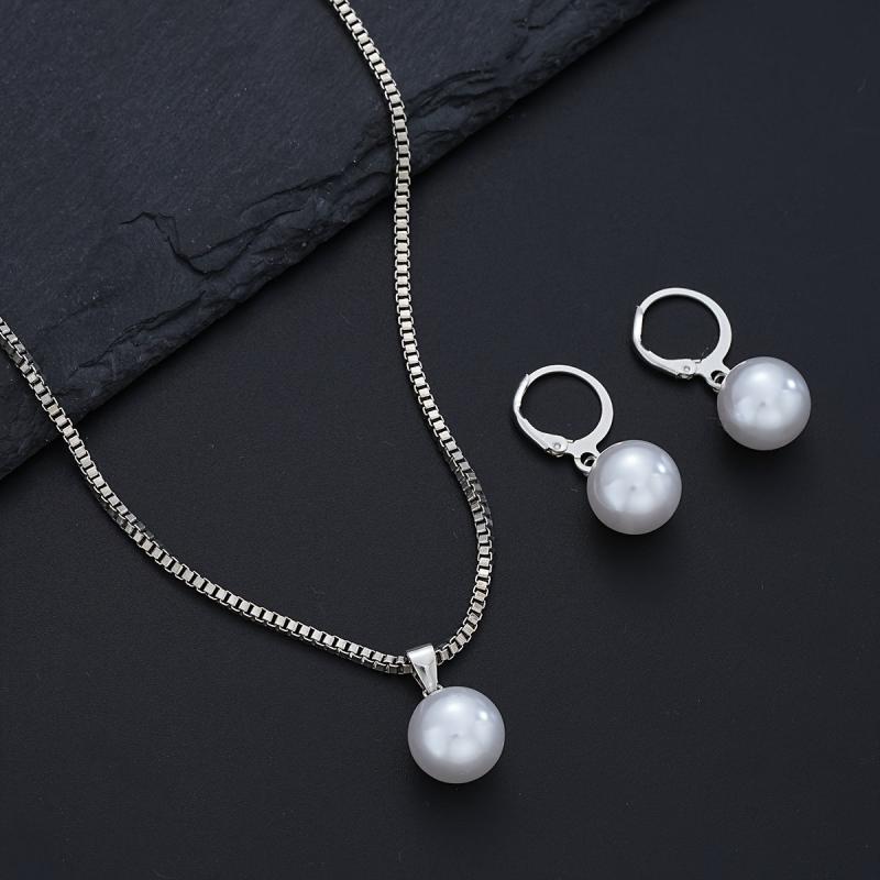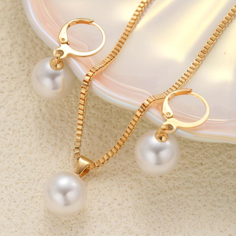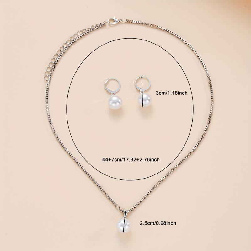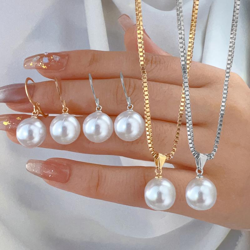 Enhance your style with this 6-piece jewelry set featuring round faux pearl earrings and necklace. Perfect for daily wear, vacations, beach outings, parties, or as a thoughtful gift.
