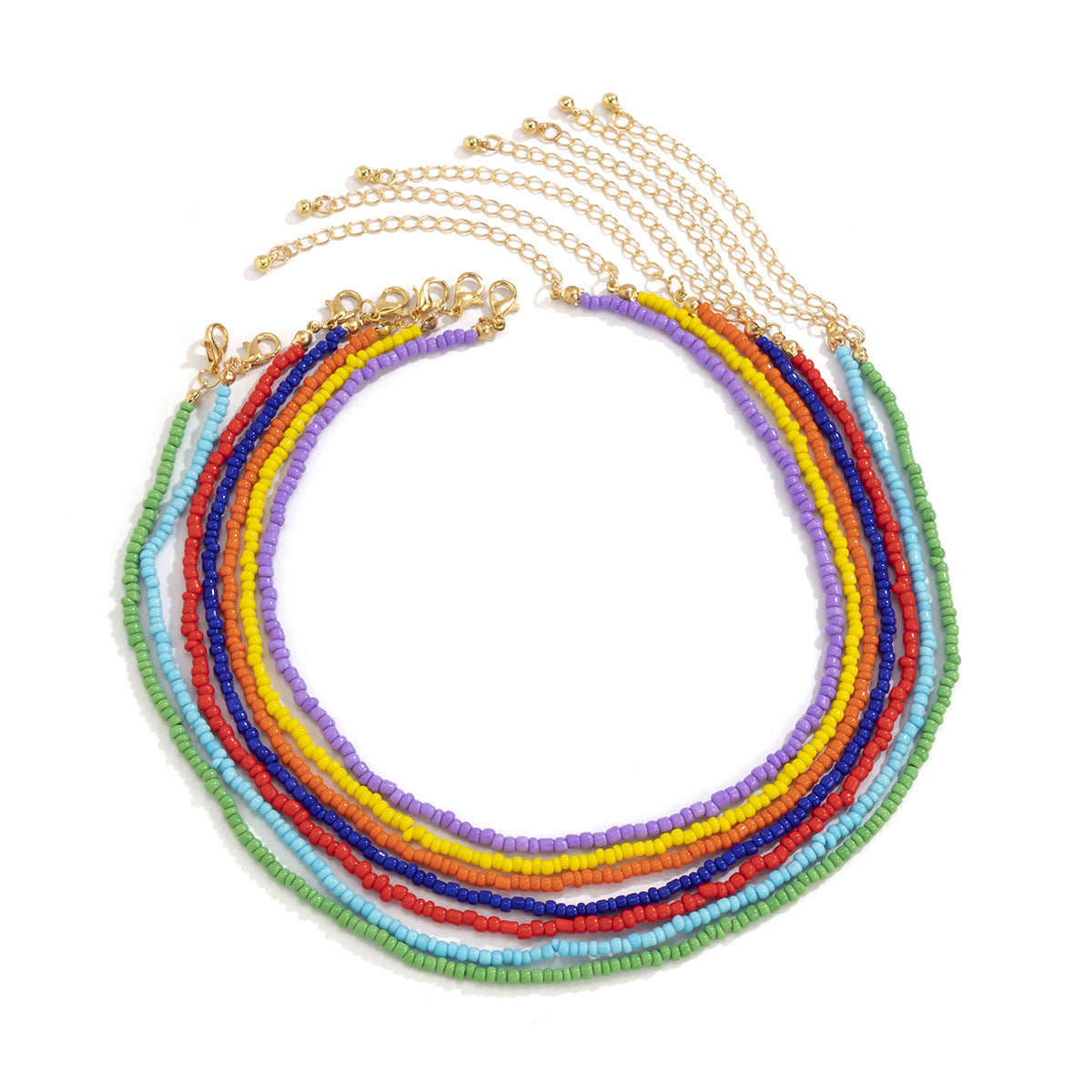 Elevate your look with this vibrant 7 piece beaded necklace set. Each necklace features a unique mix of colorful beads making it perfect for adding a pop of color to any outfit.