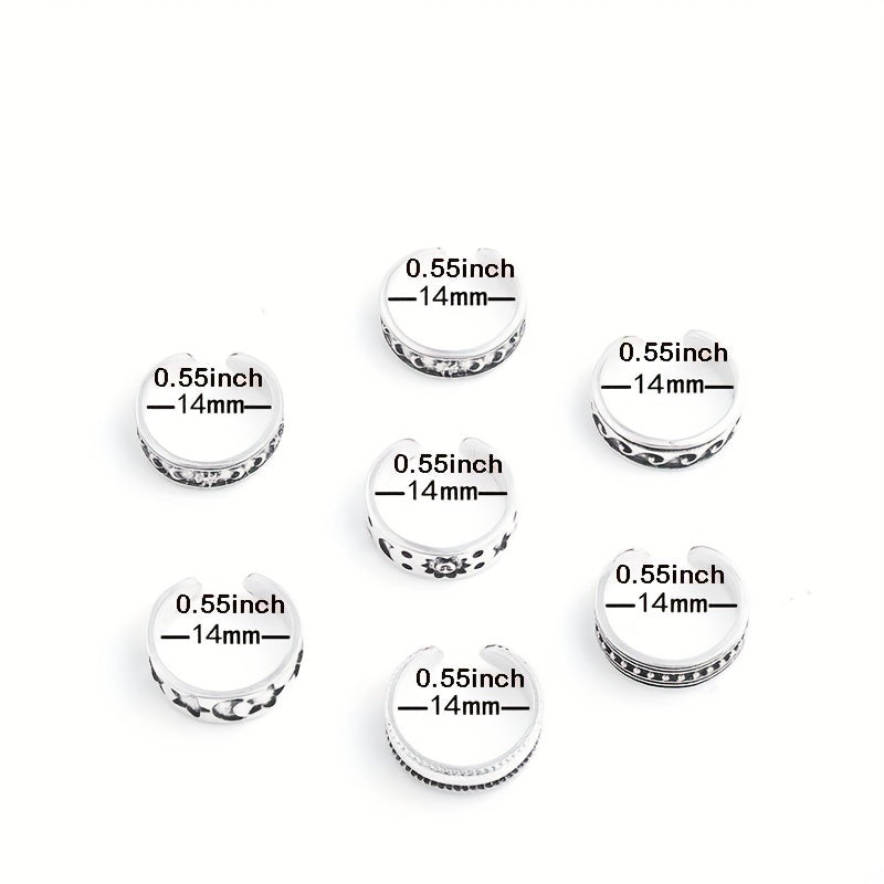 Add some boho chic style to your summer look with this set of 7 adjustable open toe rings. Perfect for wearing on the beach or with sandals.