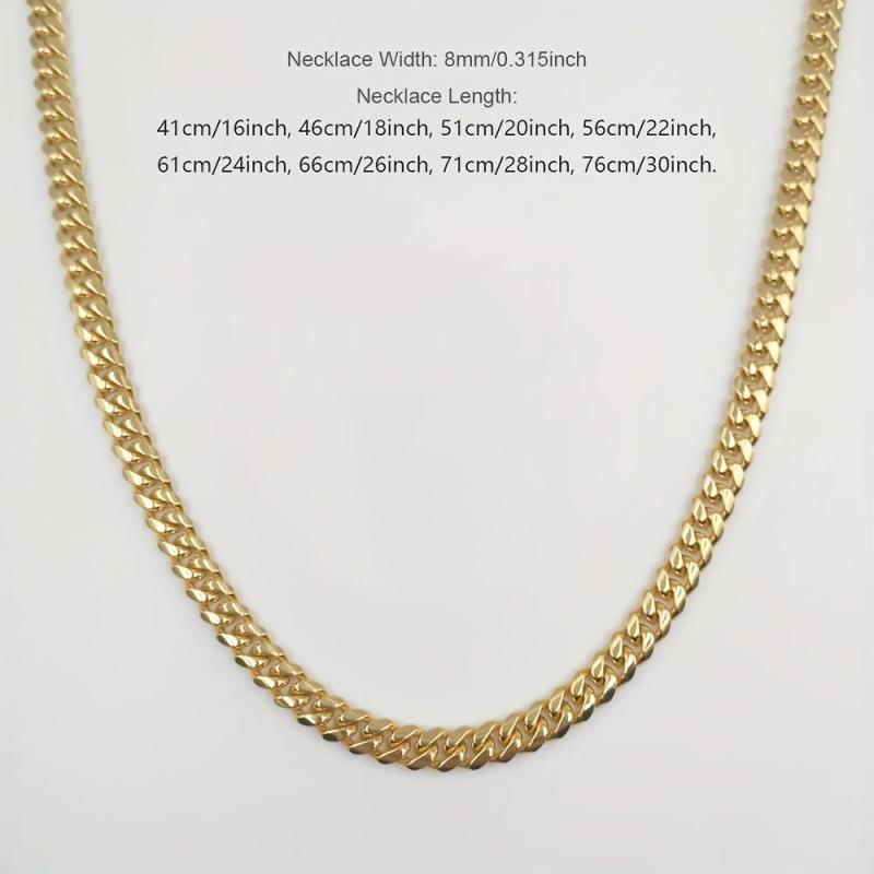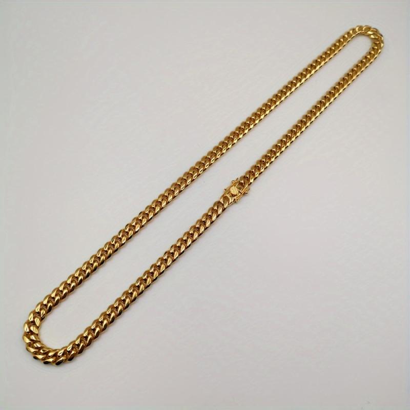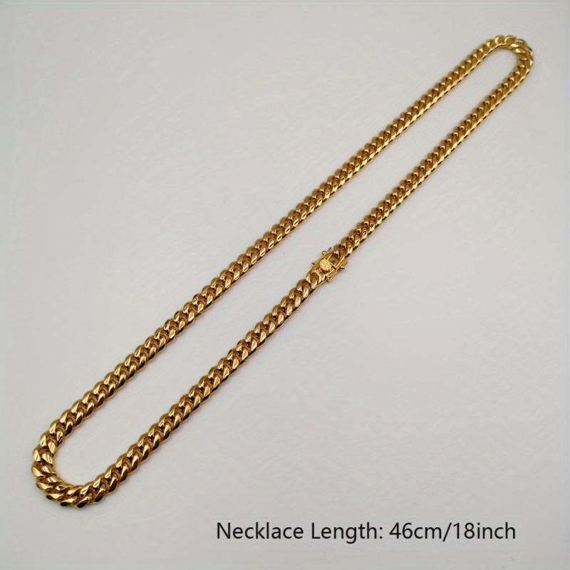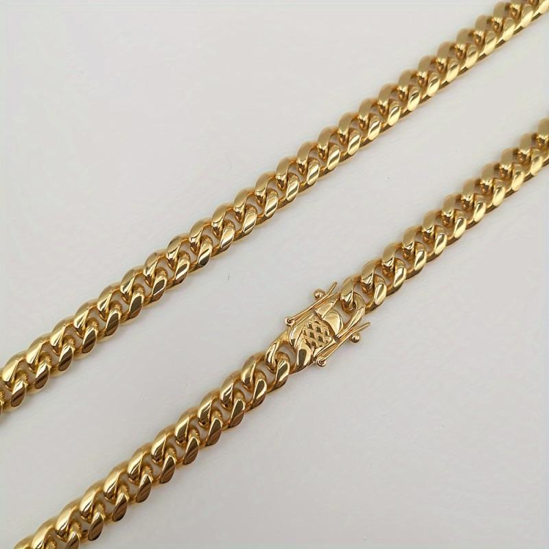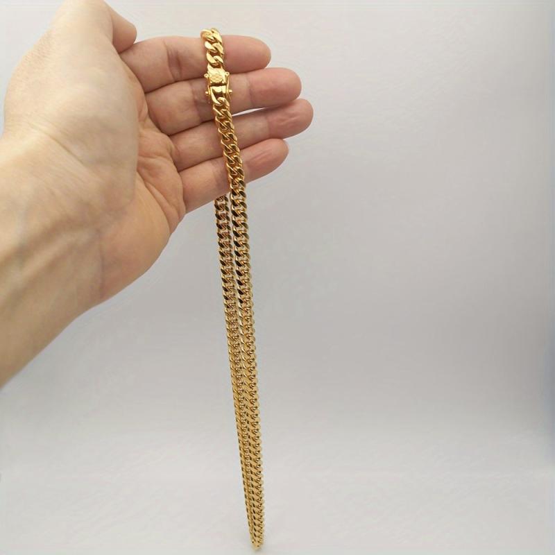 This high-quality stainless steel necklace and bracelet set is inspired by hip hop fashion. The durable golden plating and high polish make it a stylish accessory for any occasion.