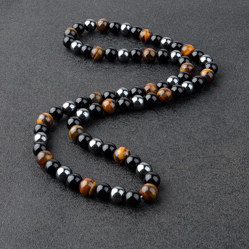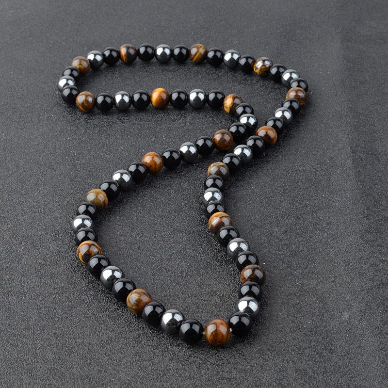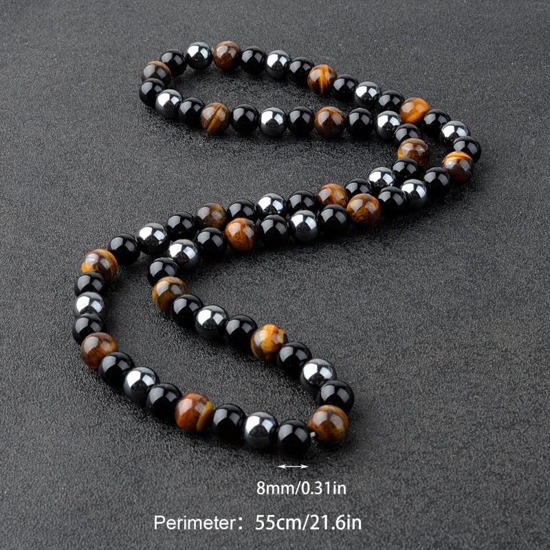 Elegant choker necklace made of natural stone beads, suitable for men. The stretch design ensures a comfortable fit.