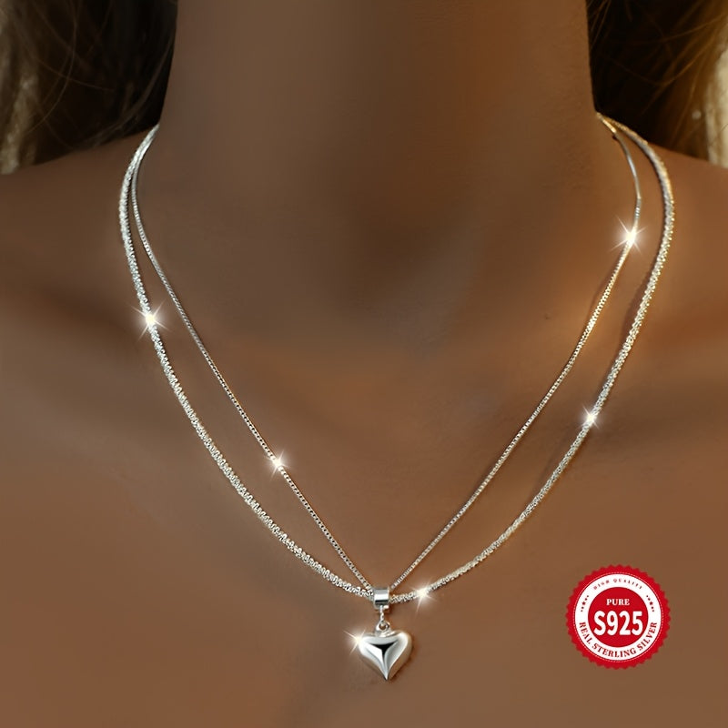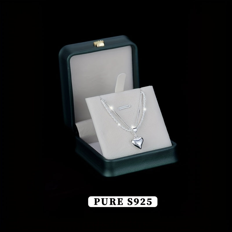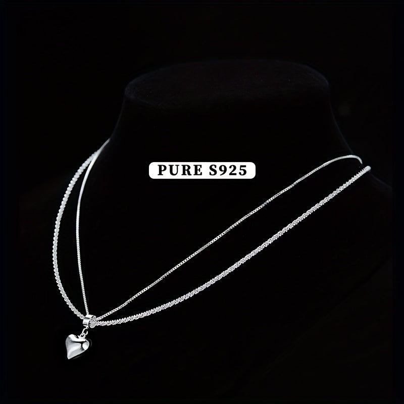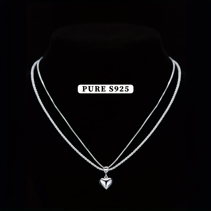 This elegant necklace features a double layer 925 pure silvery design with a heart-shaped pendant. Perfect for daily wear and special occasions, this versatile necklace adds a touch of sophistication to any outfit.