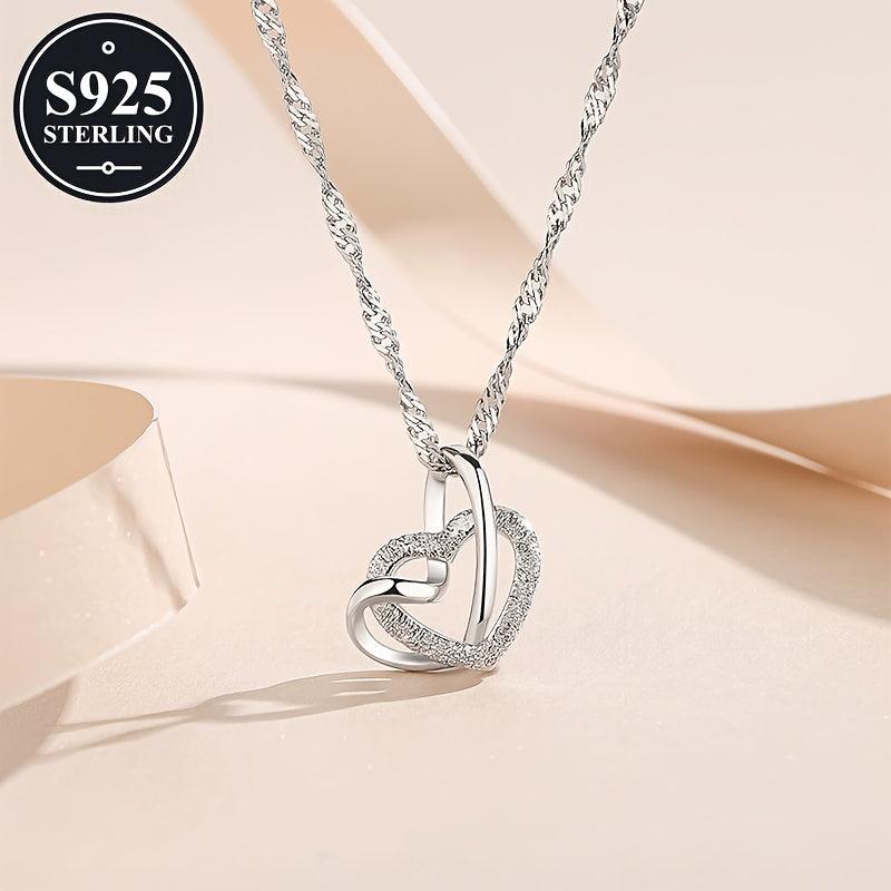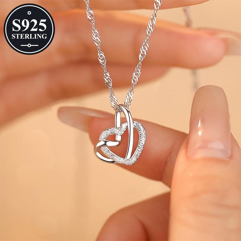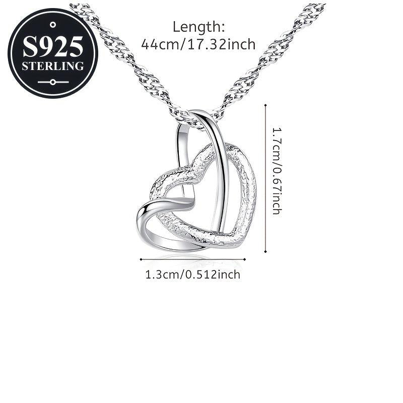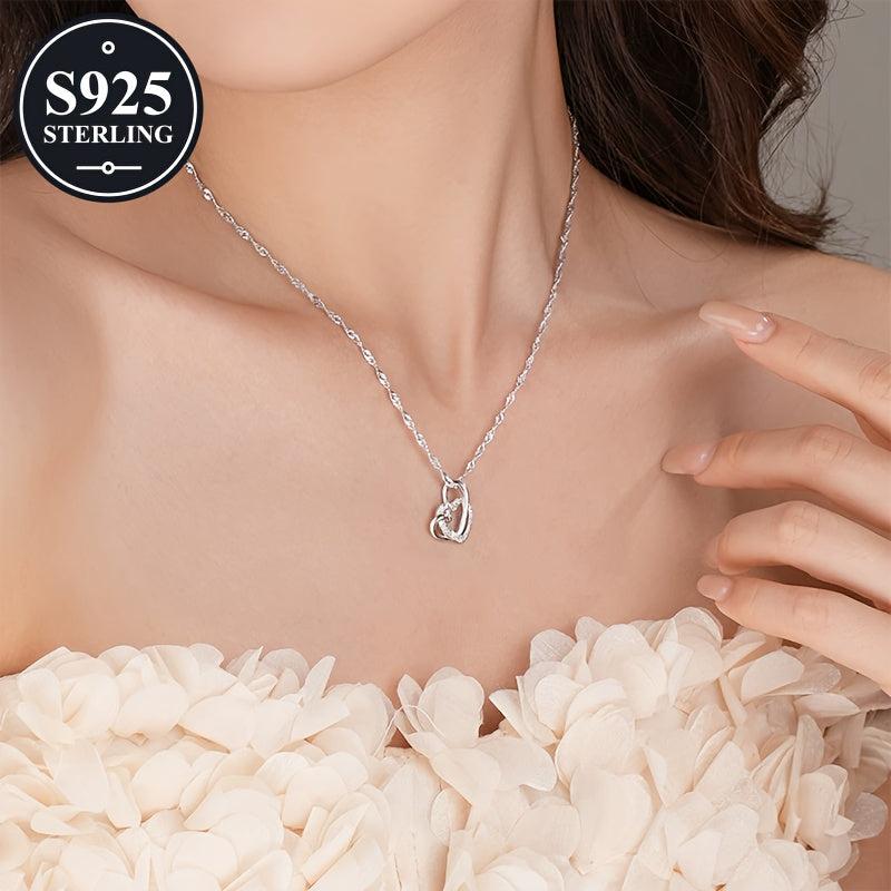 High-end 925 low allergy double love necklace suitable for women. This pendant light clavicle chain is a versatile and stylish gift for your girlfriend. Comes in an anti-oxidation storage box.