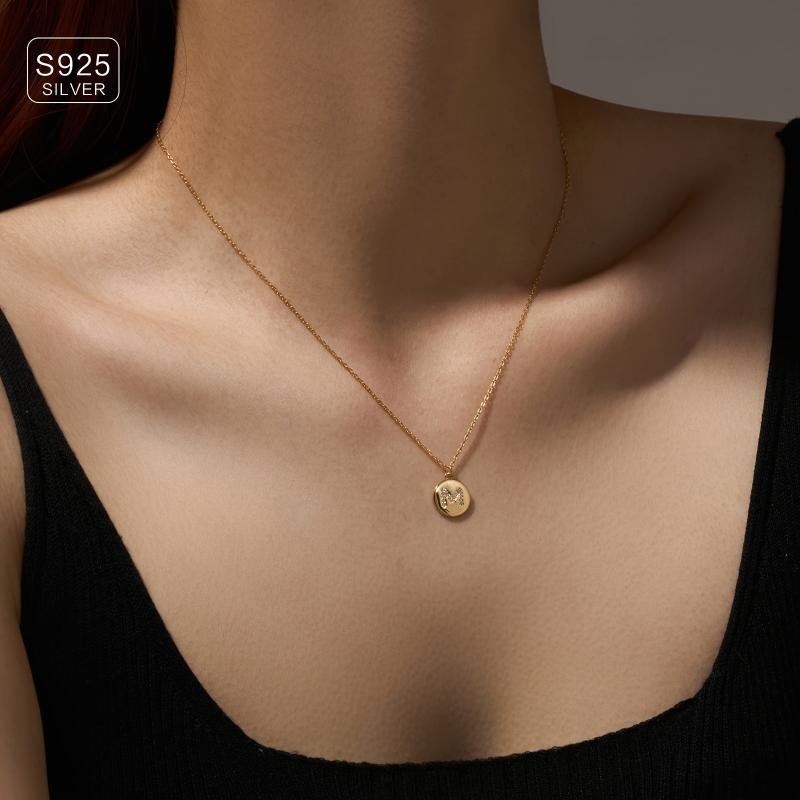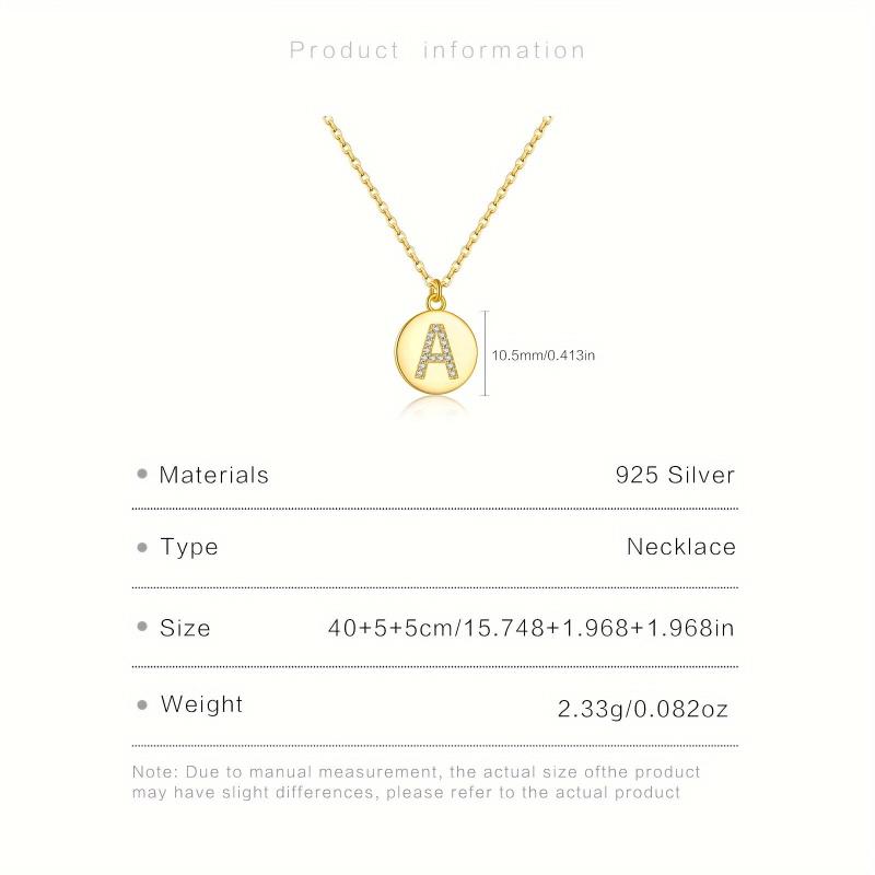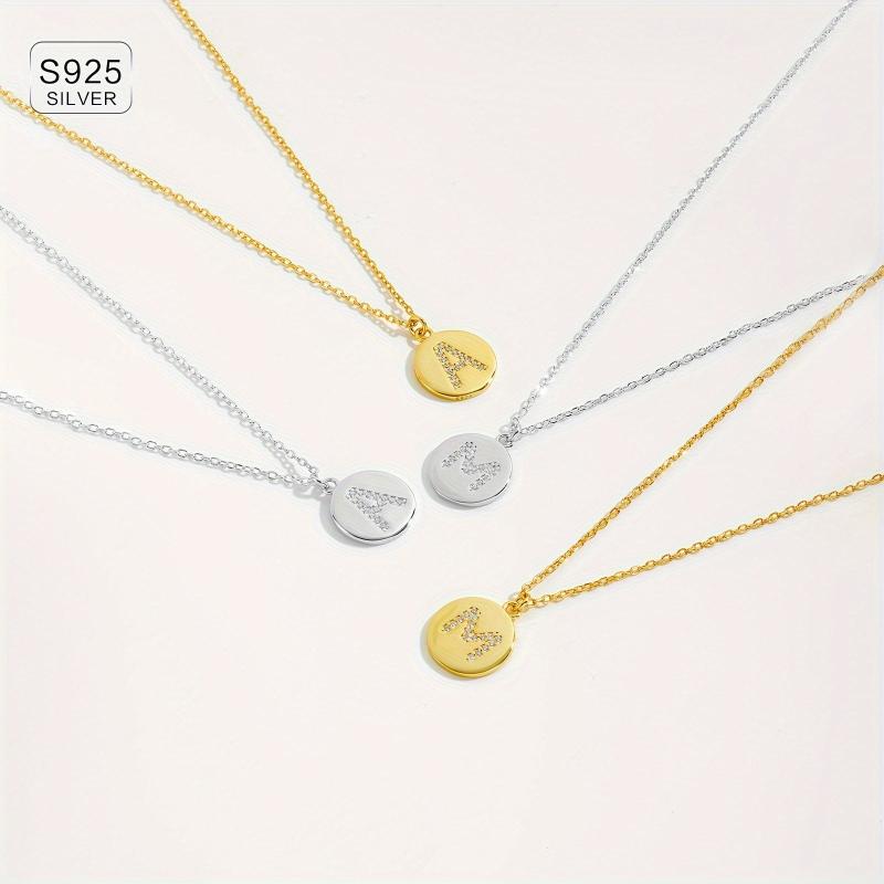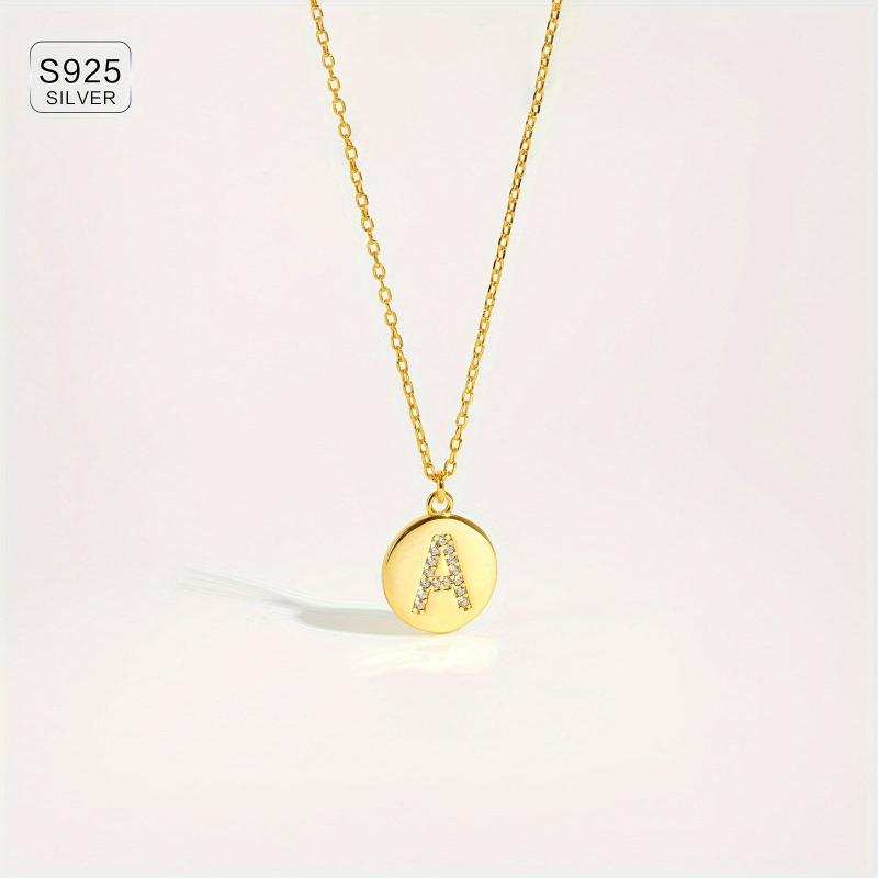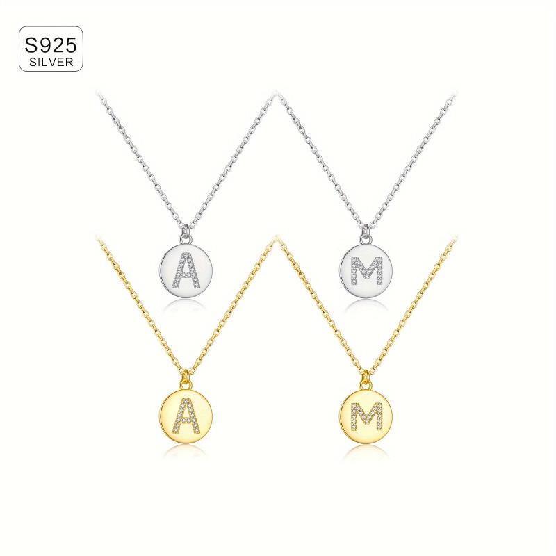 Add a touch of glamour to your outfit with this 925 sterling silver initial necklace featuring sparkling cubic zirconia. Choose between a silvery or golden round tag for a look that is perfect for vacations and parties.