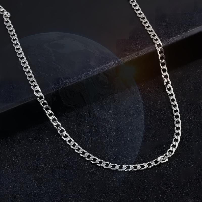 This 2mm one sided chain necklace is made of low allergy 925 silver, perfect for men or women. It features anti-oxidation properties and comes in a gift box.