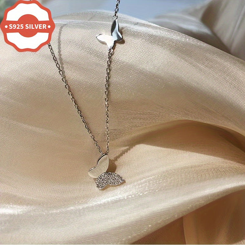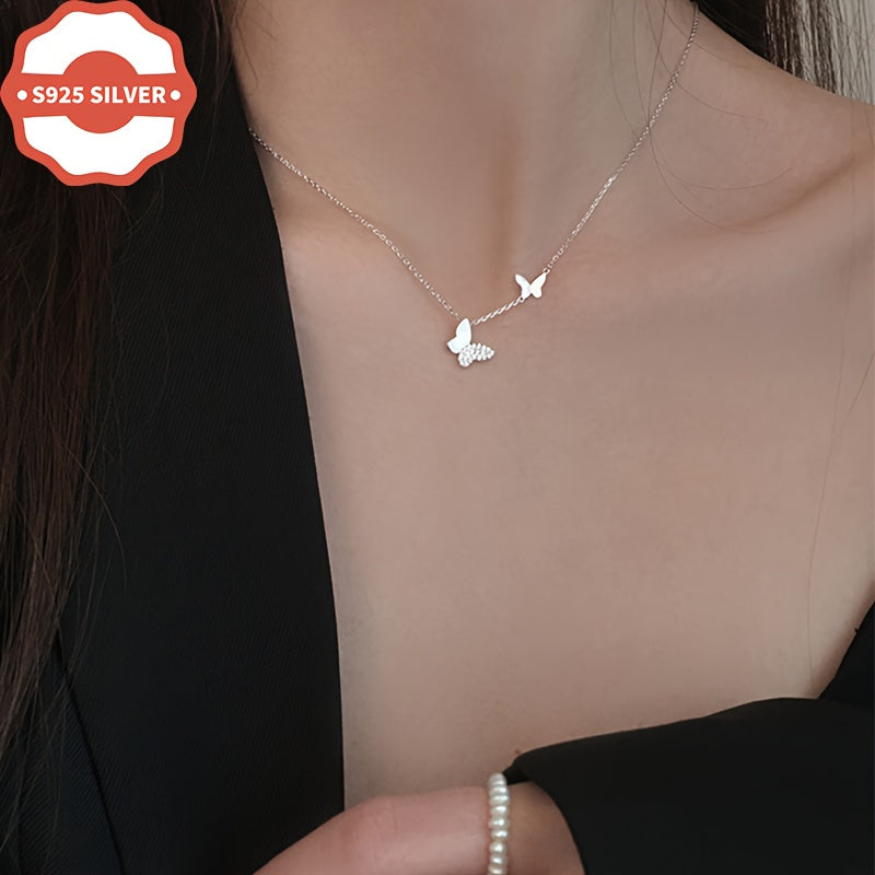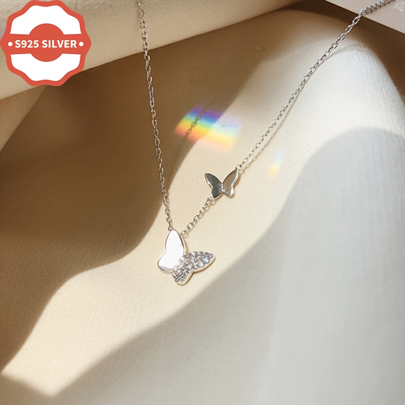 This delicate double layer necklace features a butterfly pendant, making it a perfect addition to any outfit. Ideal for all occasions and makes a great gift for women.