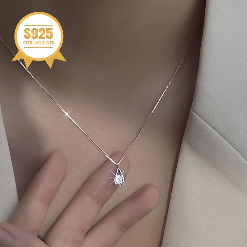 Stunning water droplet necklace designed for women with hypoallergenic 925 silver. This unique piece features a delicate collar chain, making it an ideal gift for Valentine's or Mother's Day.