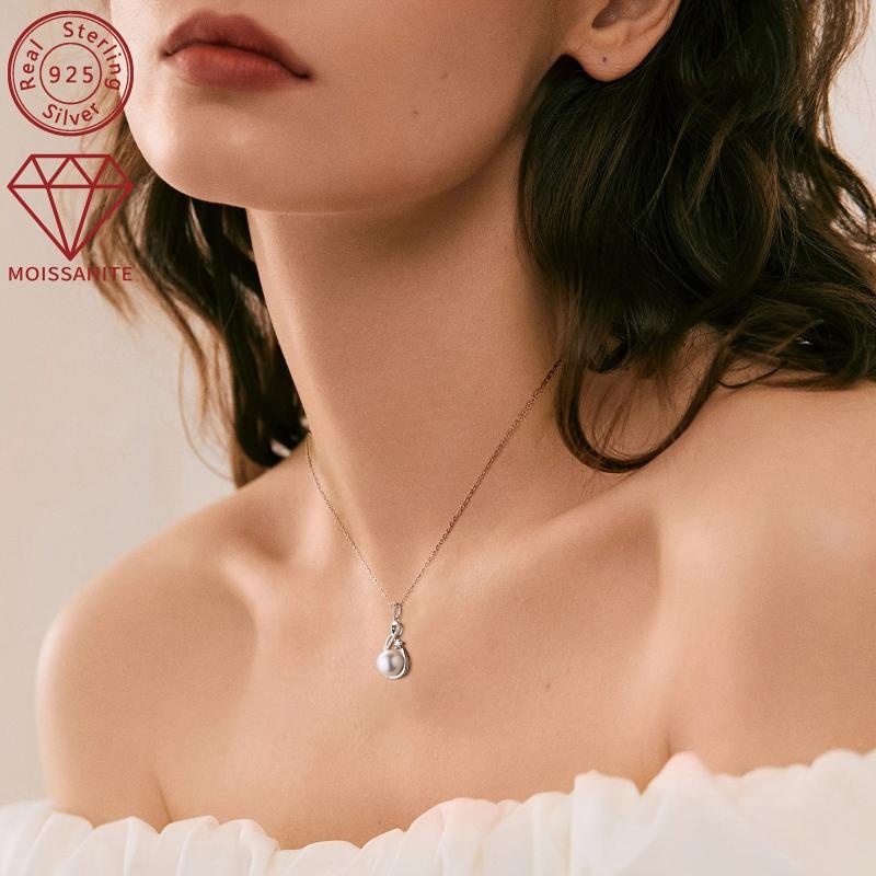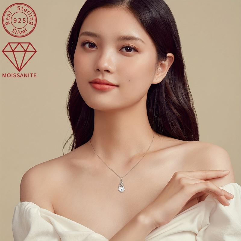 This elegant necklace features a 3mm & 1.3mm natural freshwater moissanite totaling 0.21ct set in 925 silver for a stunning look.