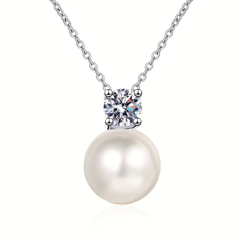 Elegant and chic, this necklace features a lustrous pearl accentuated with a sparkling 0.5ct moissanite stone on a delicate clavicle chain.
