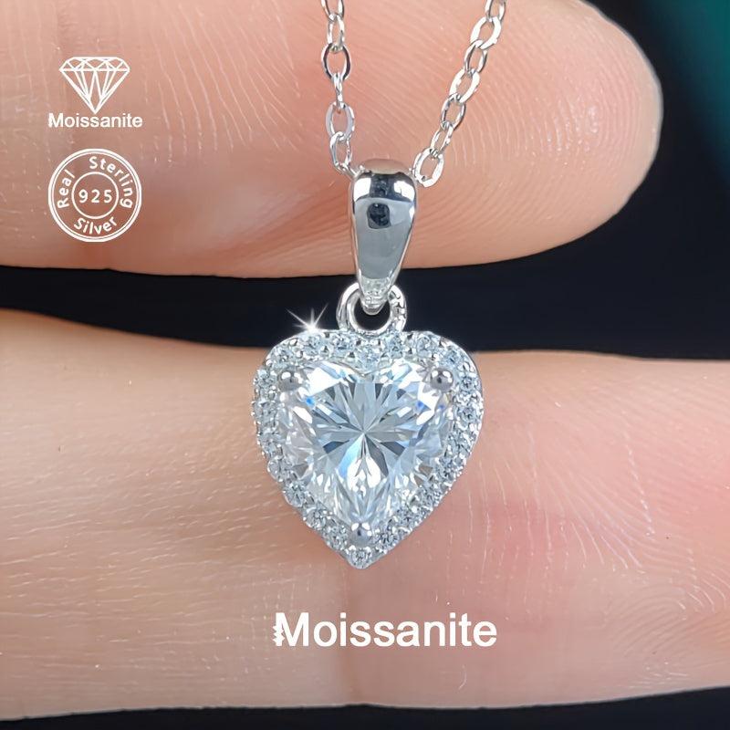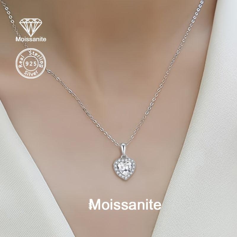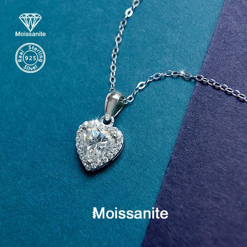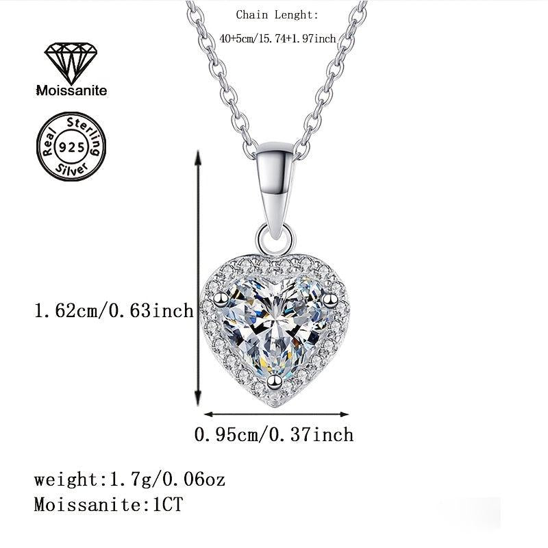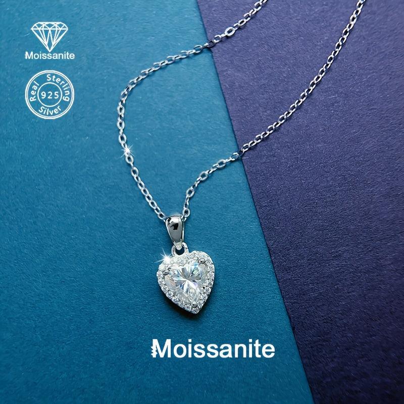 This stylish heart-shaped pendant necklace is crafted with a 1 carat moissanite stone that sparkles brilliantly. It is an ideal birthday gift and is suitable for daily wear, vacations, and parties.