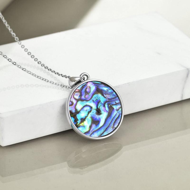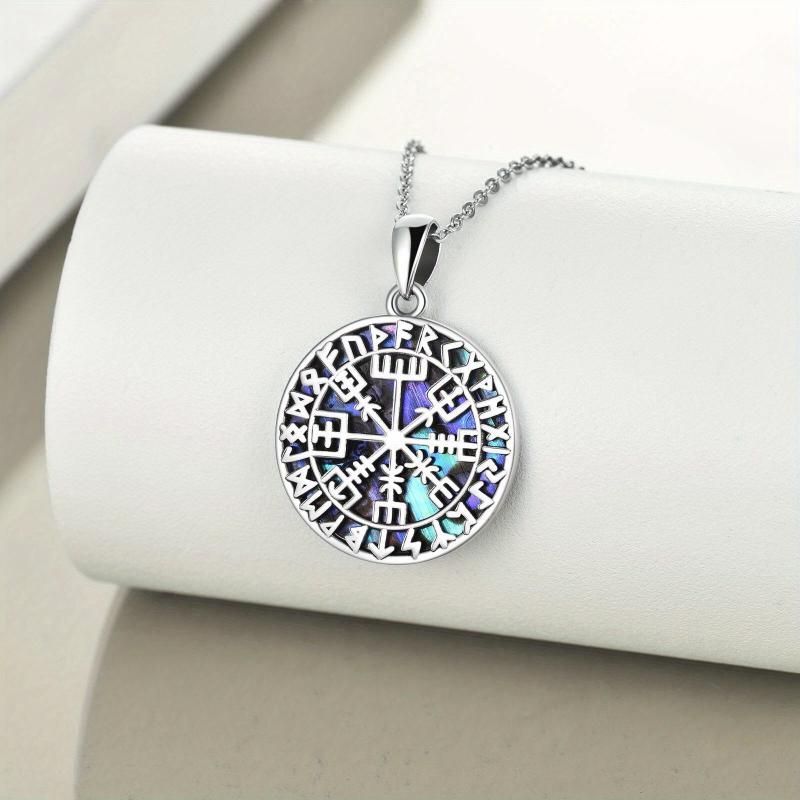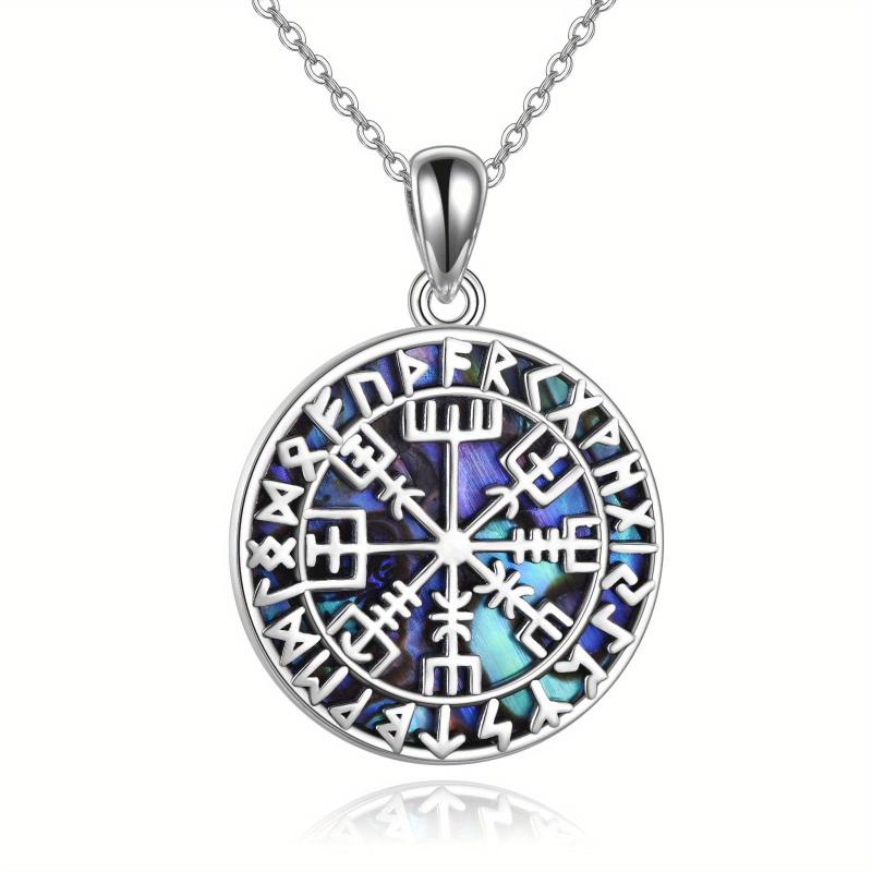 Elegant rune necklace crafted in 925 sterling silver with an abalone shell pendant. Perfect Viking-inspired accessory for women.