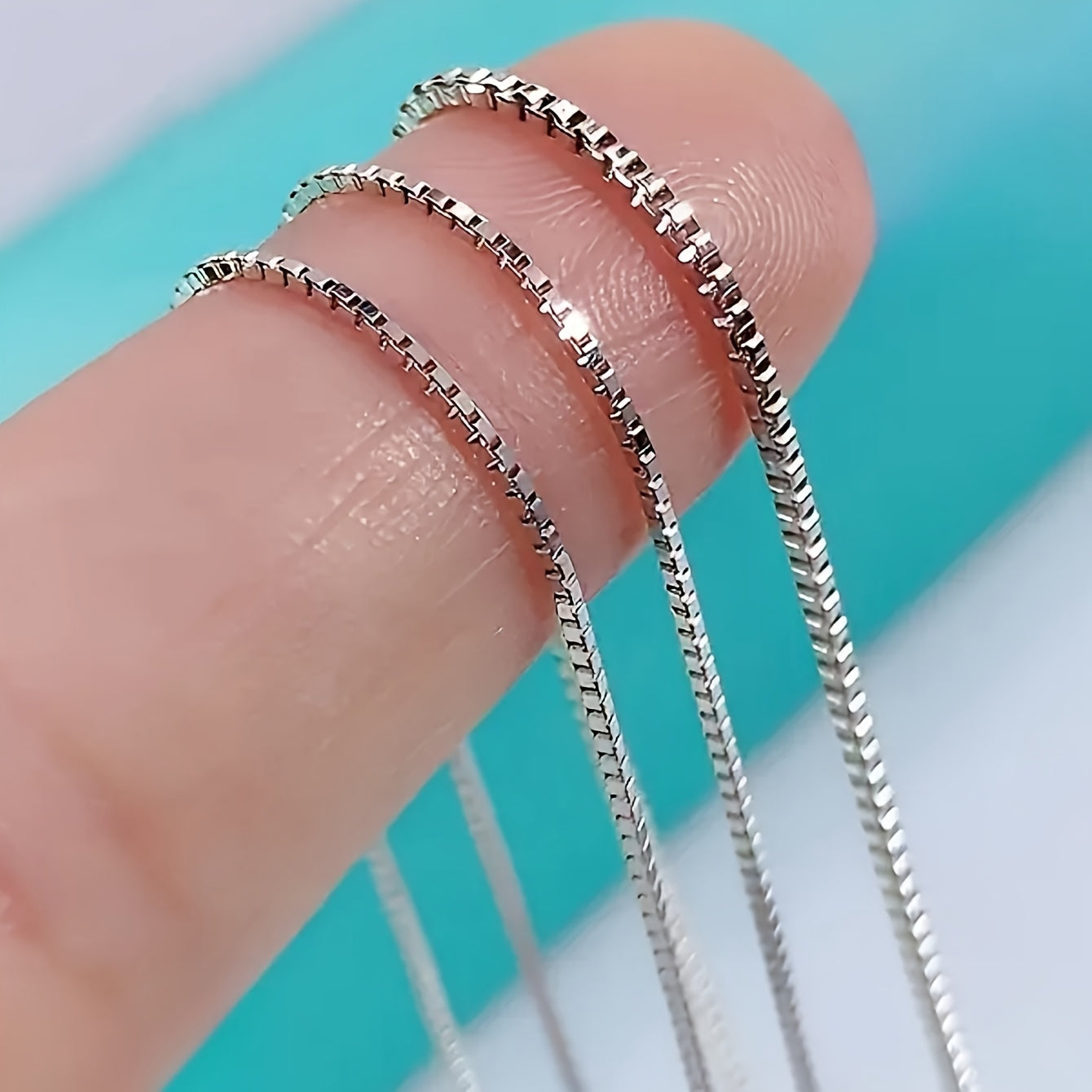 Elegant 925 silver necklace with box chain, perfect for daily wear. Available in lengths of 40, 45, 50, and 55cm, weighing 2.5-3.3g.