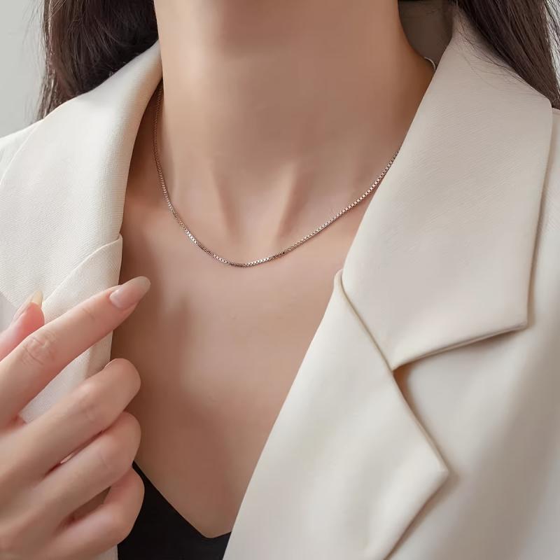This minimalistic box chain necklace is made of 925 silver, perfect for everyday wear or special occasions. A versatile and elegant piece that makes a great Thanksgiving gift.