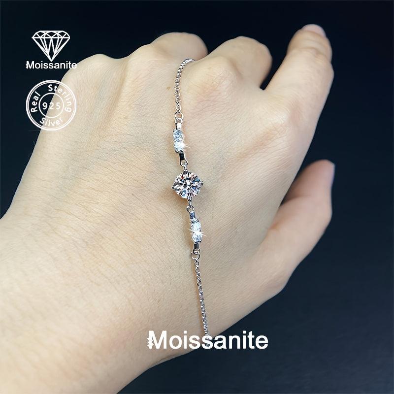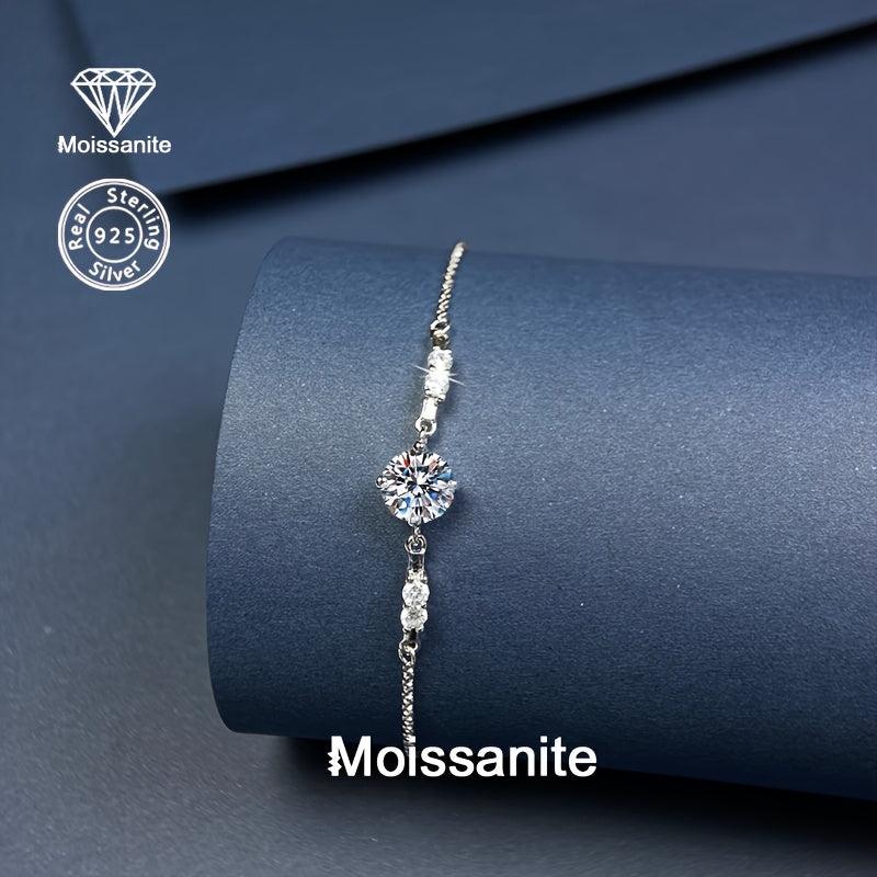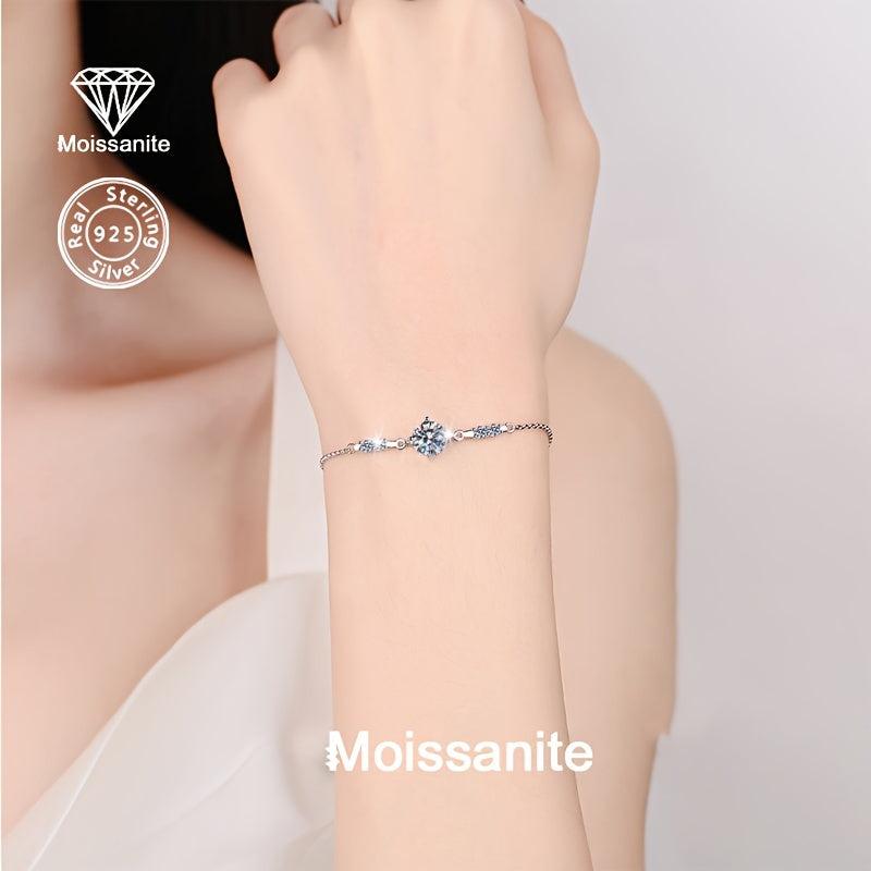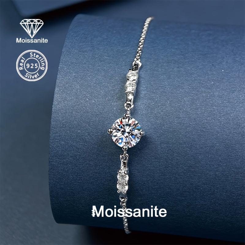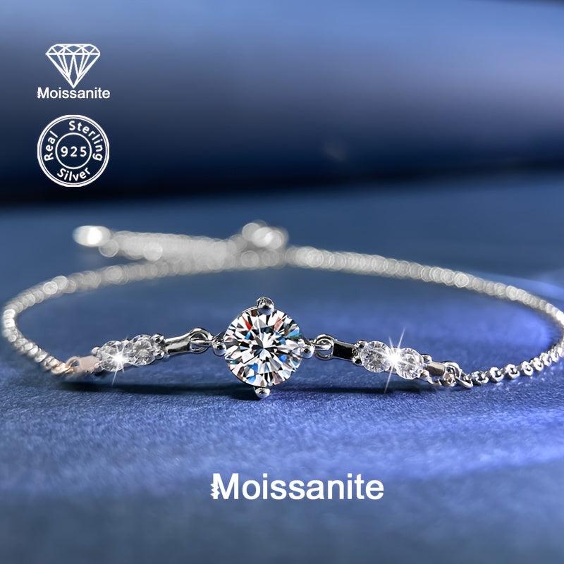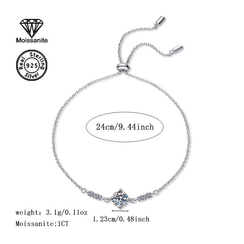 Elegant and versatile 925 silver bracelet with a stunning 1 carat moissanite stone. Perfect for daily wear, vacation, parties, or weddings. Makes a great gift for birthdays, Christmas, Halloween, or any occasion.