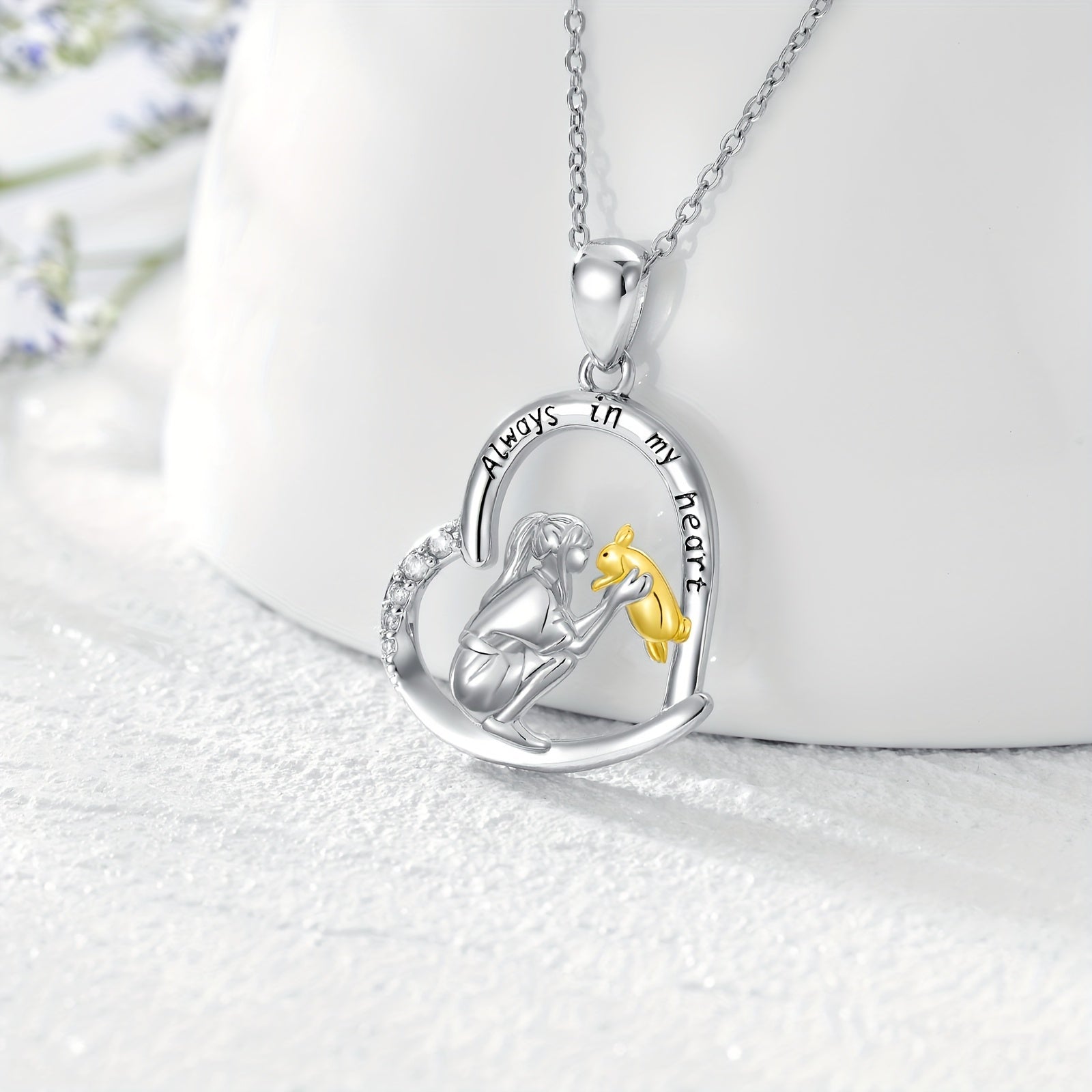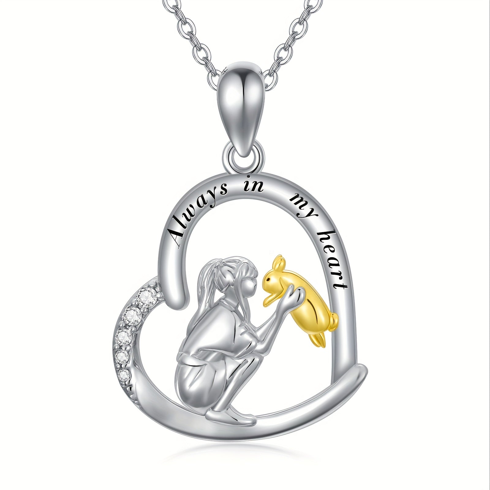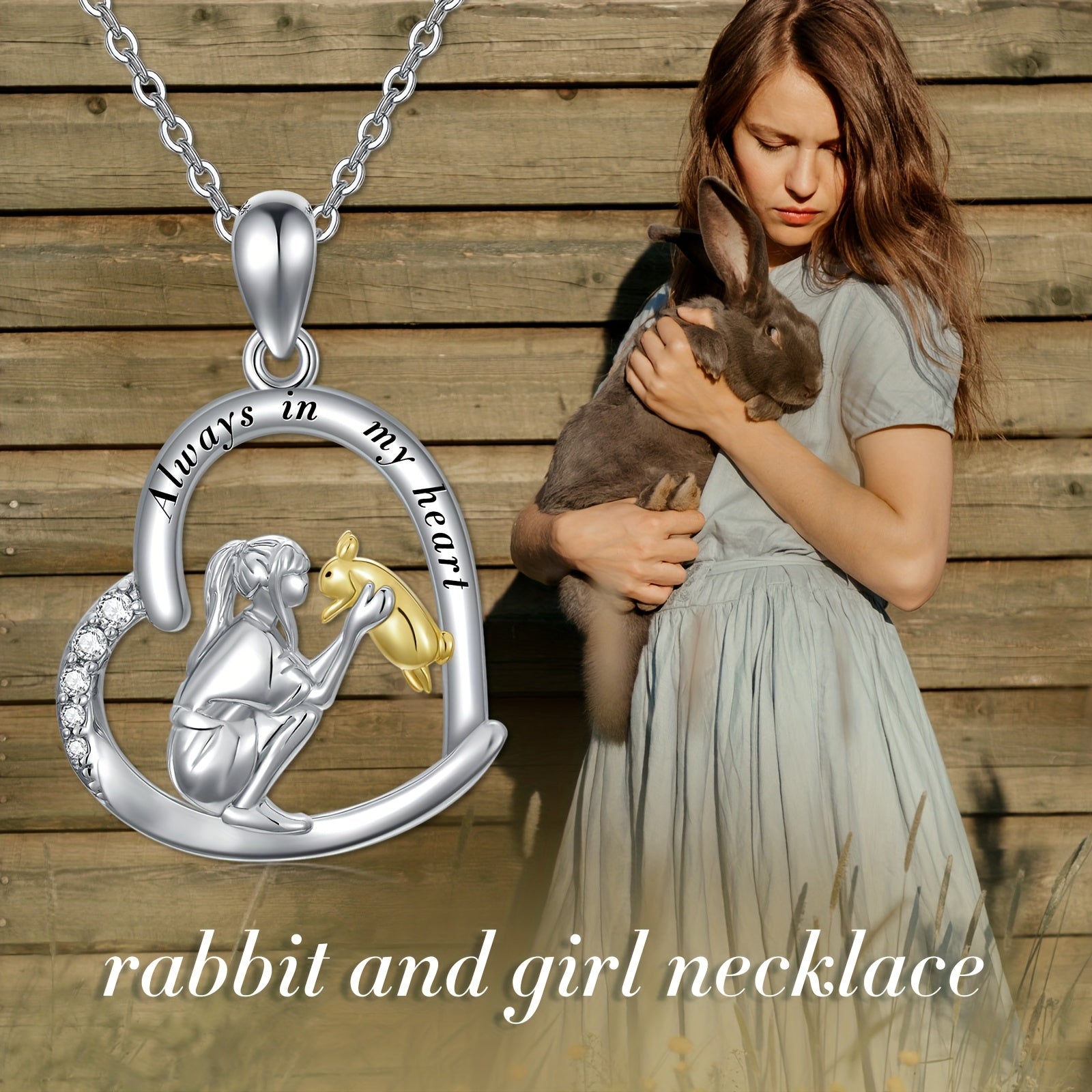 Beautiful sterling silver necklace featuring a rabbit and girl pendant. Keep your pet bunny close to your heart with this elegant jewelry piece.
