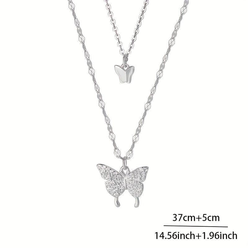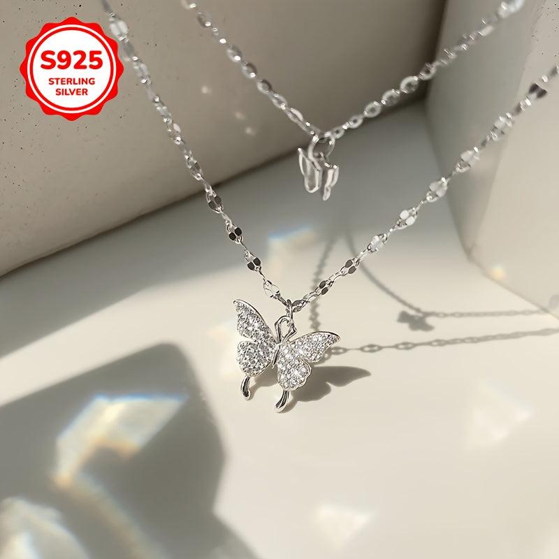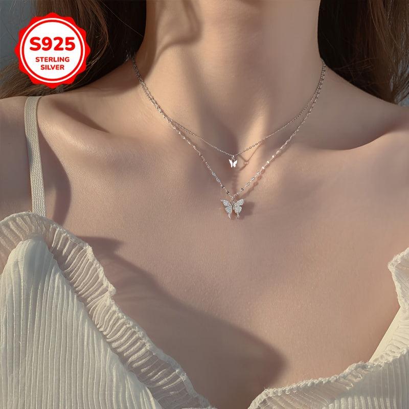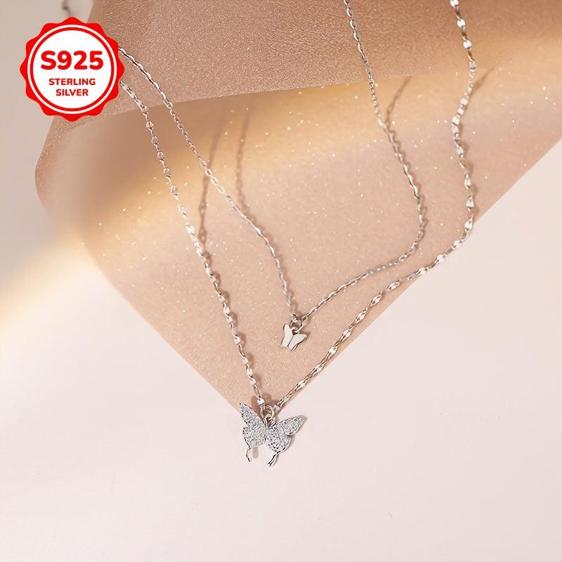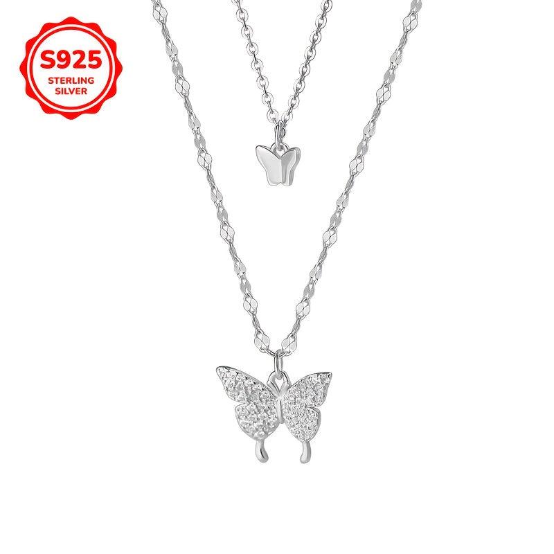 This double-layer butterfly necklace is a versatile accessory that can be worn year-round. Made of 925 sterling silver, it is both elegant and durable.