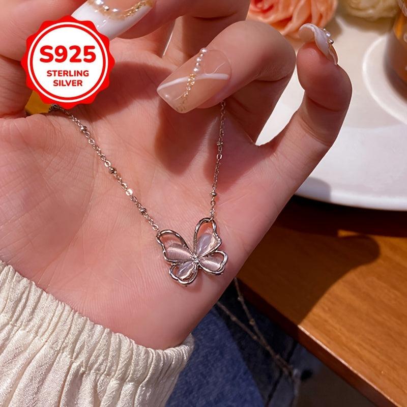 This lovely butterfly pendant necklace is made of 925 sterling silver, suitable for those with allergies. It is versatile and perfect for all seasons, making it an ideal gift option for couples.