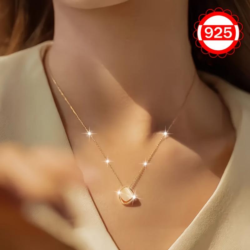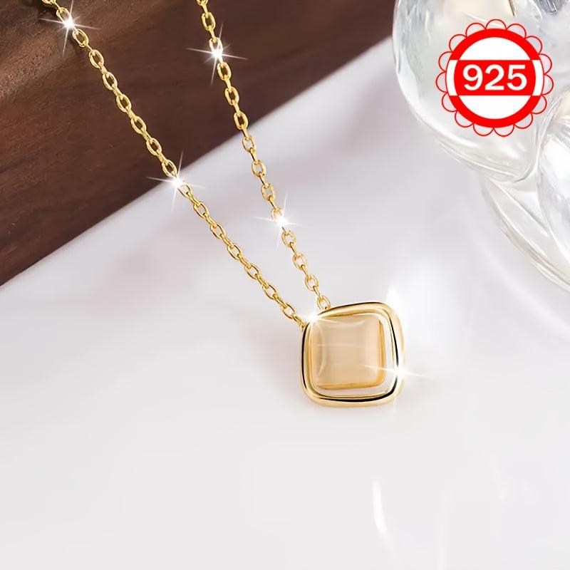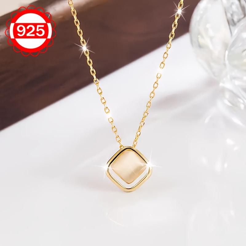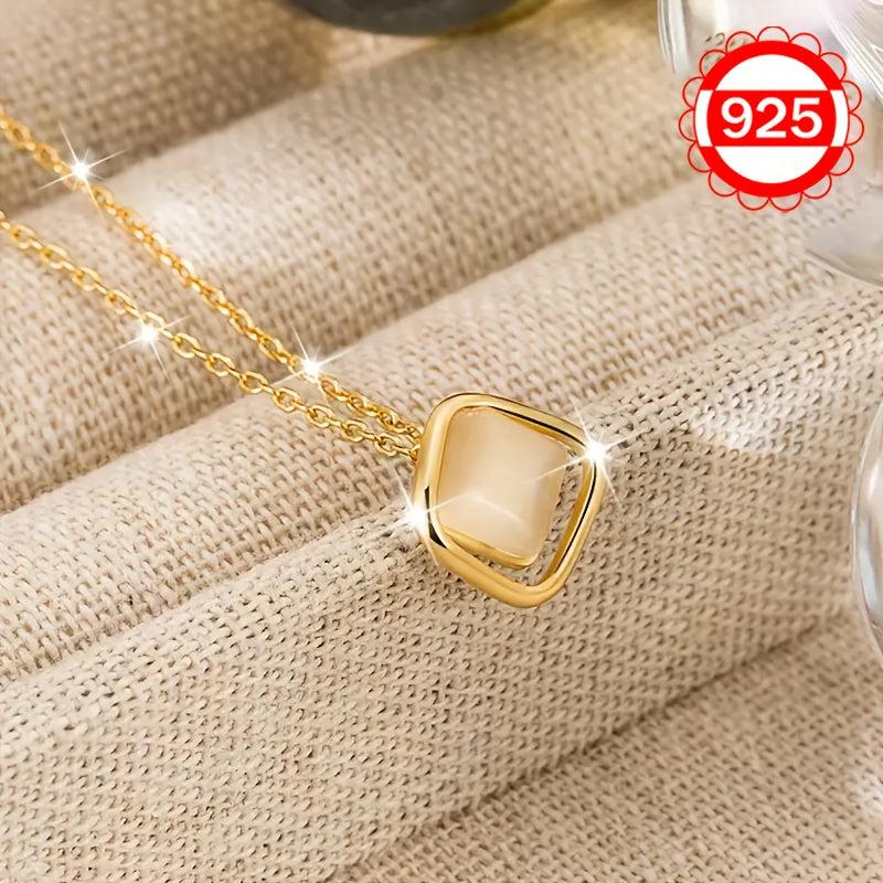 This 925 silver necklace features a cat eye stone irregular square pendant. It is a minimalist and unique collarbone chain that can be worn as a sweater chain. Ideal gift for women.