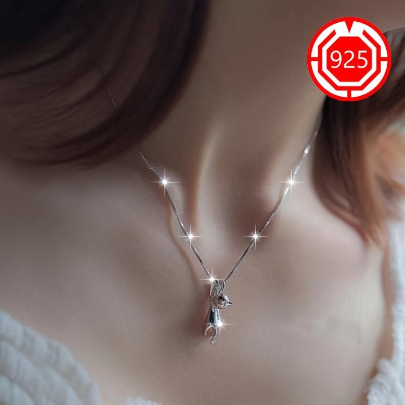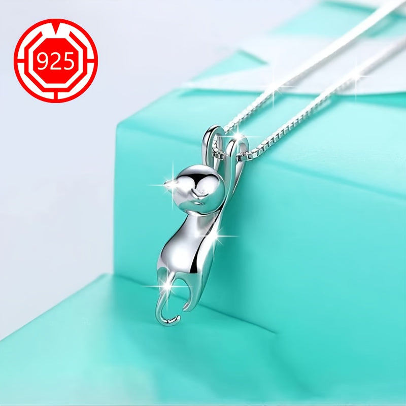 This 925 silver cat pendant necklace is perfect for couples and friends. It is hypoallergenic and suitable for daily wear. A great decorative gift for Christmas!