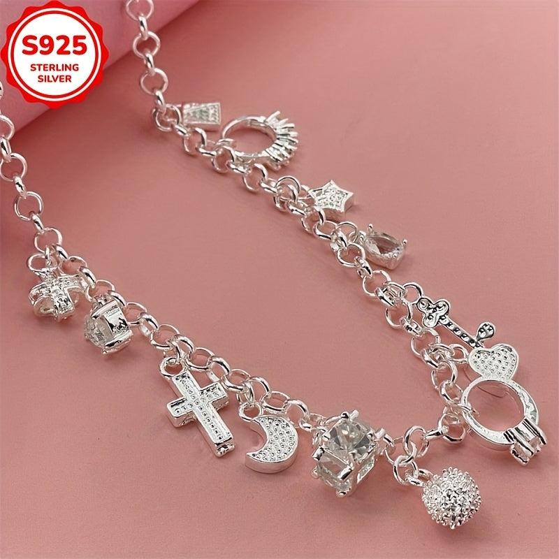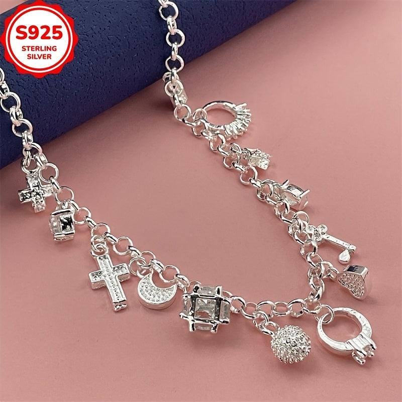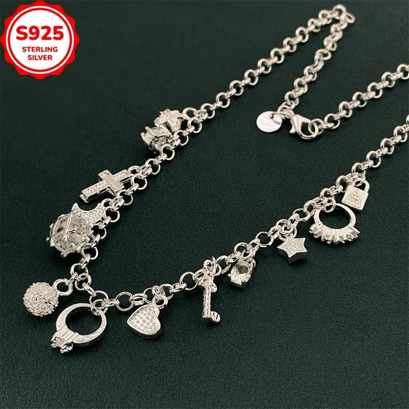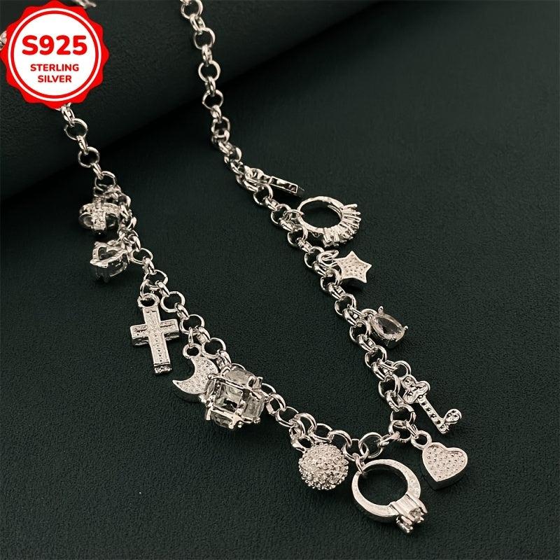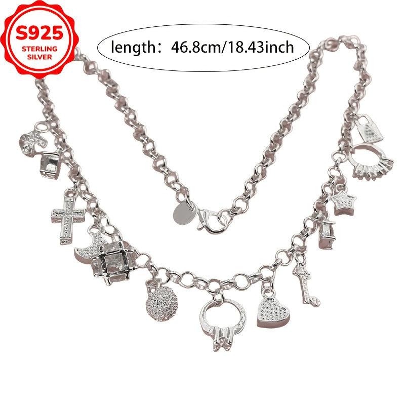 925 Silver Charm Necklace Cross Star Key Heart Pendants Allergy-Free