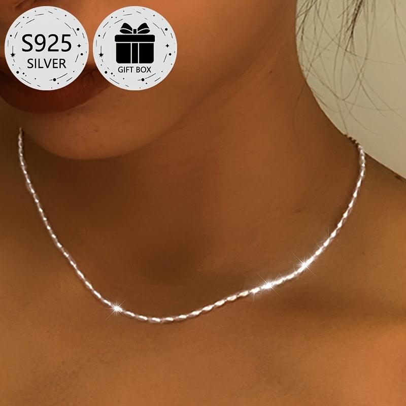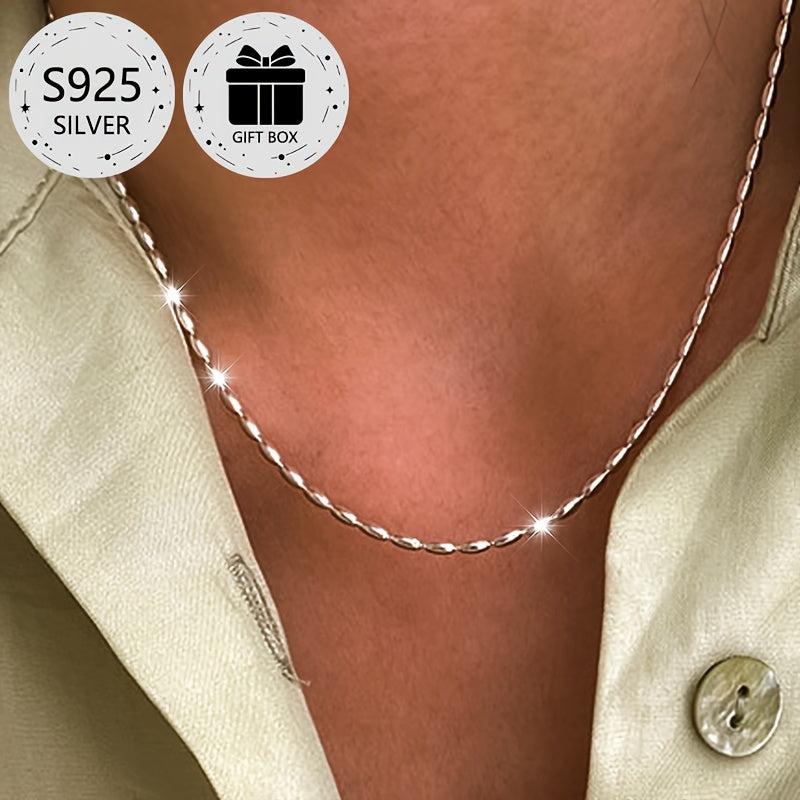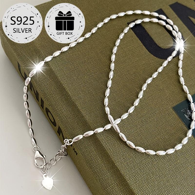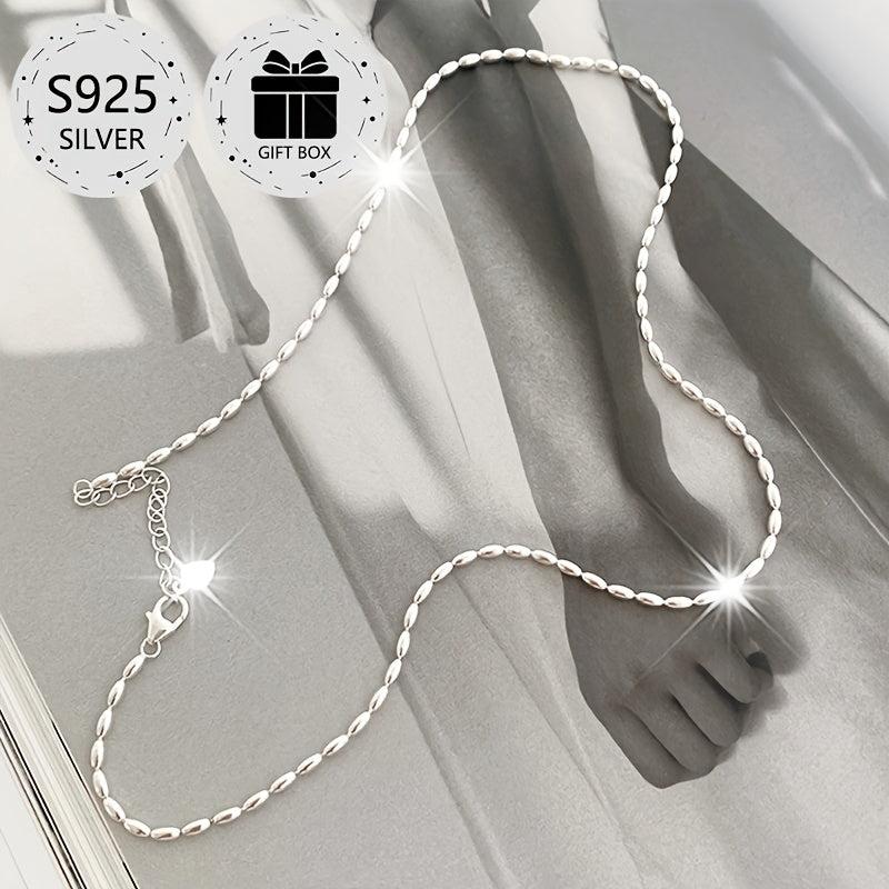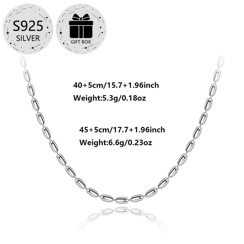 This 925 sterling silver choker necklace features a classic olive bead chain design that is versatile for daily wear, weddings, parties, and festive occasions.