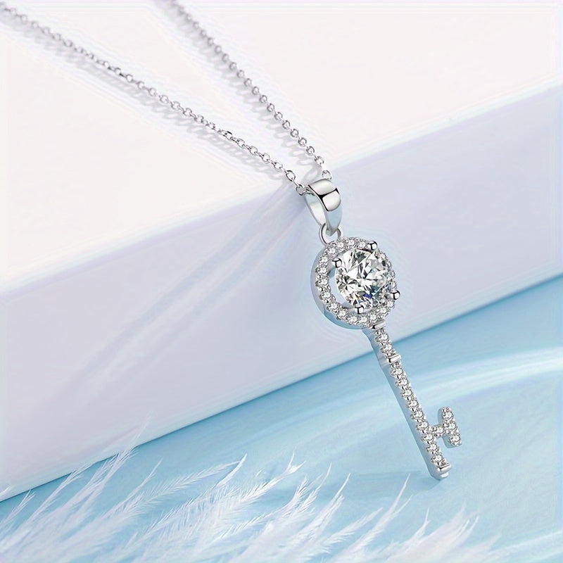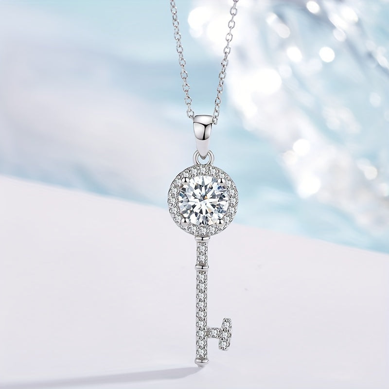 Elegant women's necklace made of 925 sterling silver featuring a collarbone chain pendant adorned with a plated Moissan Key. The sparkling Moissanite adds a touch of luxury to this stylish accessory.