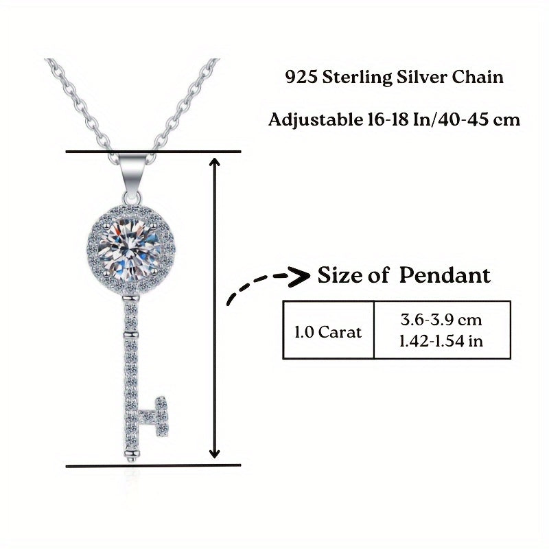 925 Silver Collarbone Chain Pendant with Moissanite Moissan Key