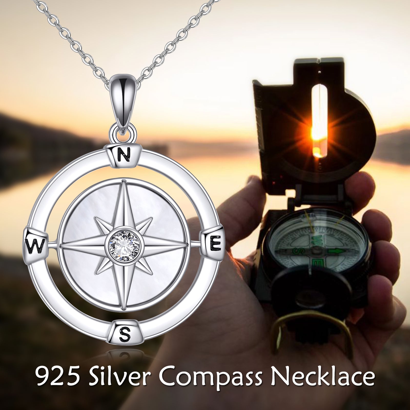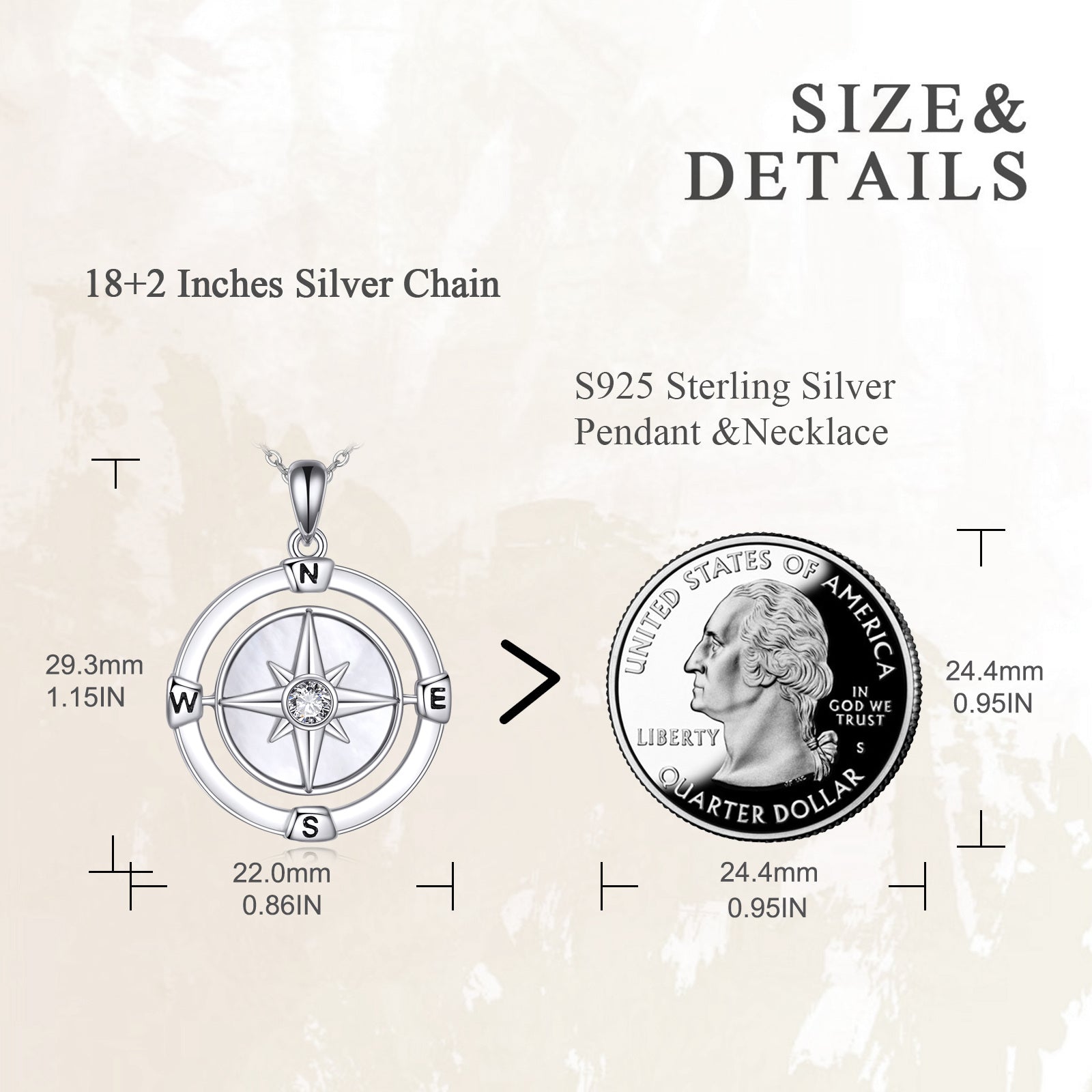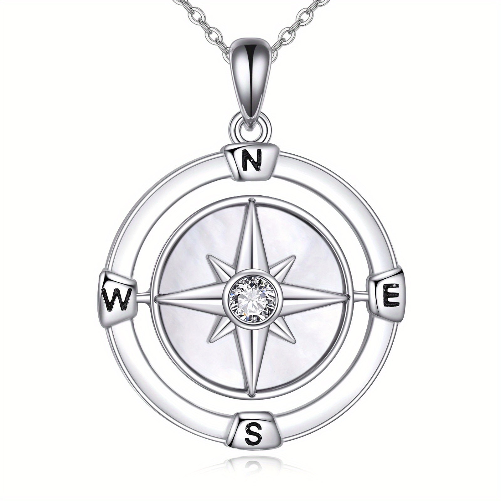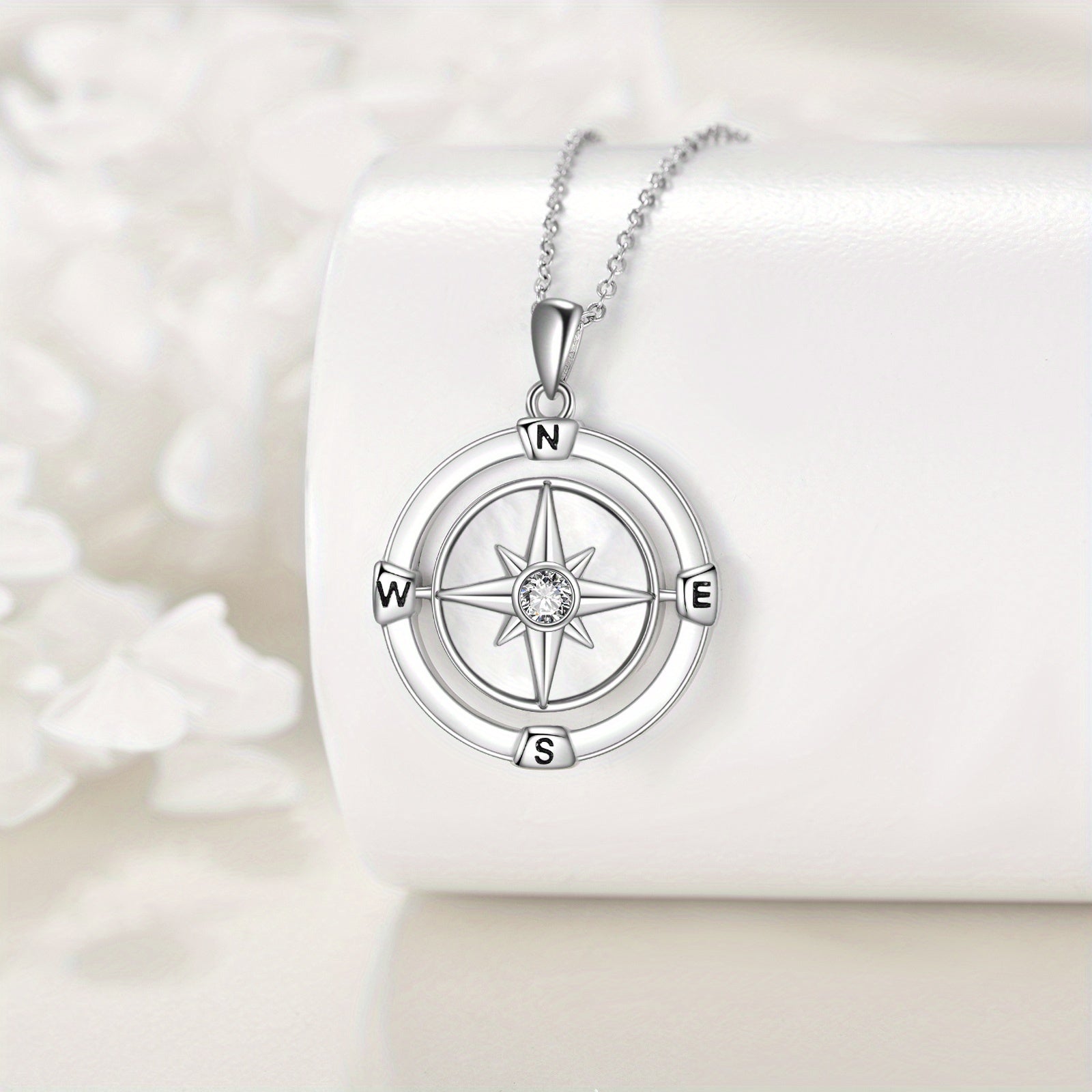 This 925 sterling silver necklace features a compass pendant. It is a sleek and stylish accessory that symbolizes direction and guidance.