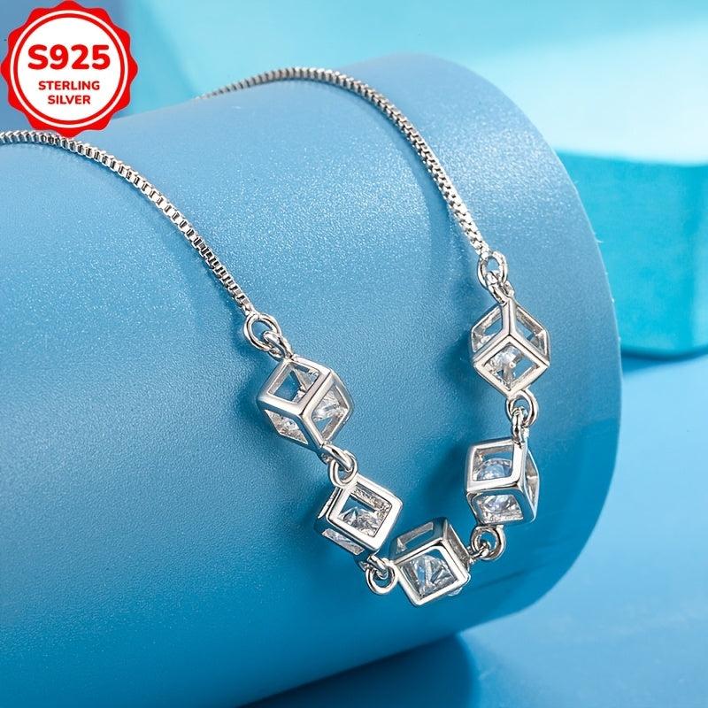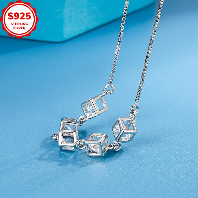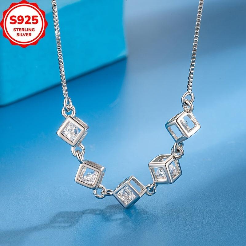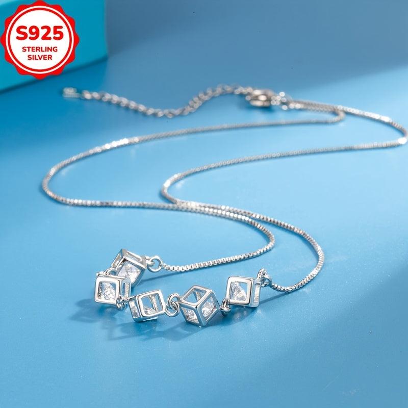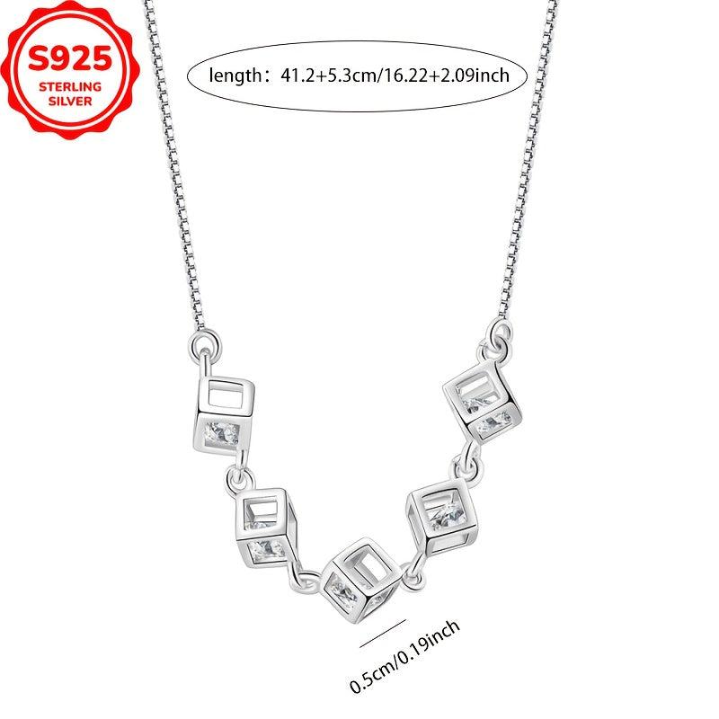Stunning 925 sterling silver necklace with cubic zirconia cube pendant. Perfect for all seasons, hypoallergenic and anti-oxidation treatment.