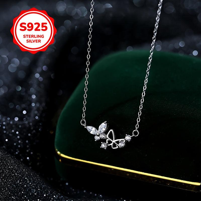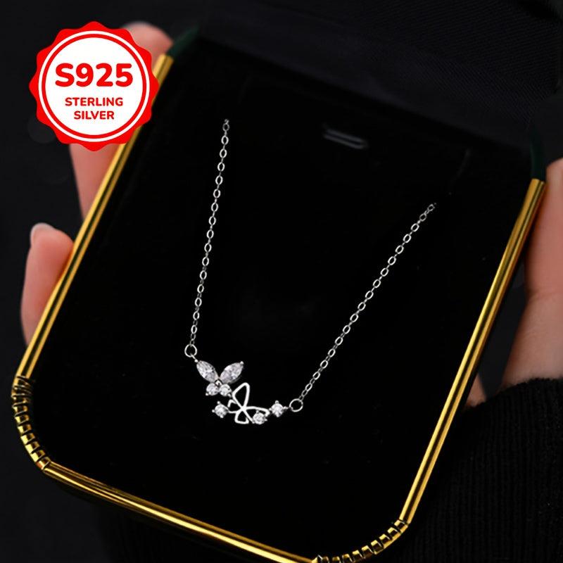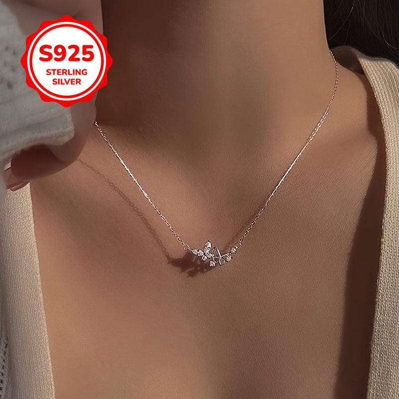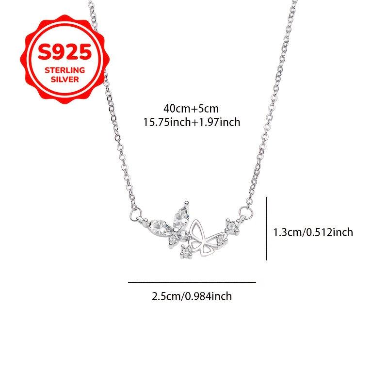 This 925 silver double butterfly necklace is a versatile piece that adds a touch of creativity and elegance to any outfit. Lightweight and hypoallergenic, suitable for all seasons.