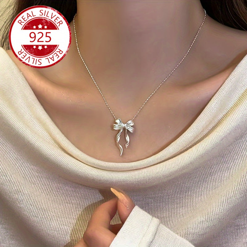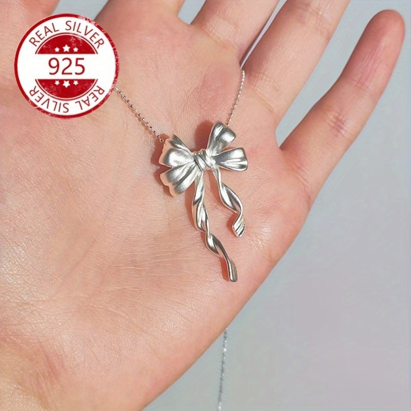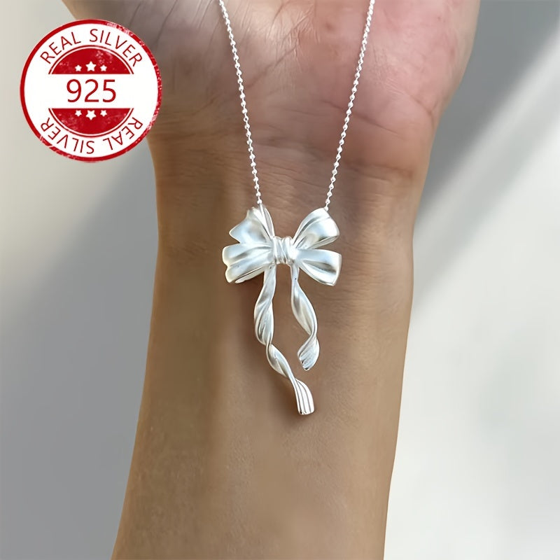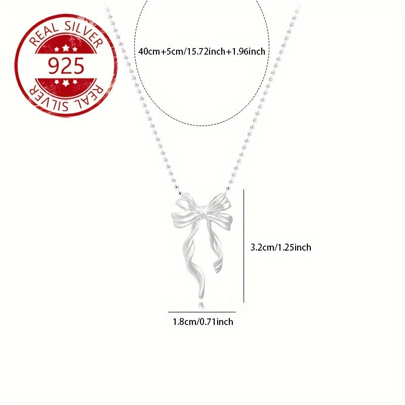 This stunning necklace features a dynamic ribbon double layer bow tassel pendant on a delicate round bead chain. Made of 925 silver, it is hypoallergenic and has a beautiful matte finish.