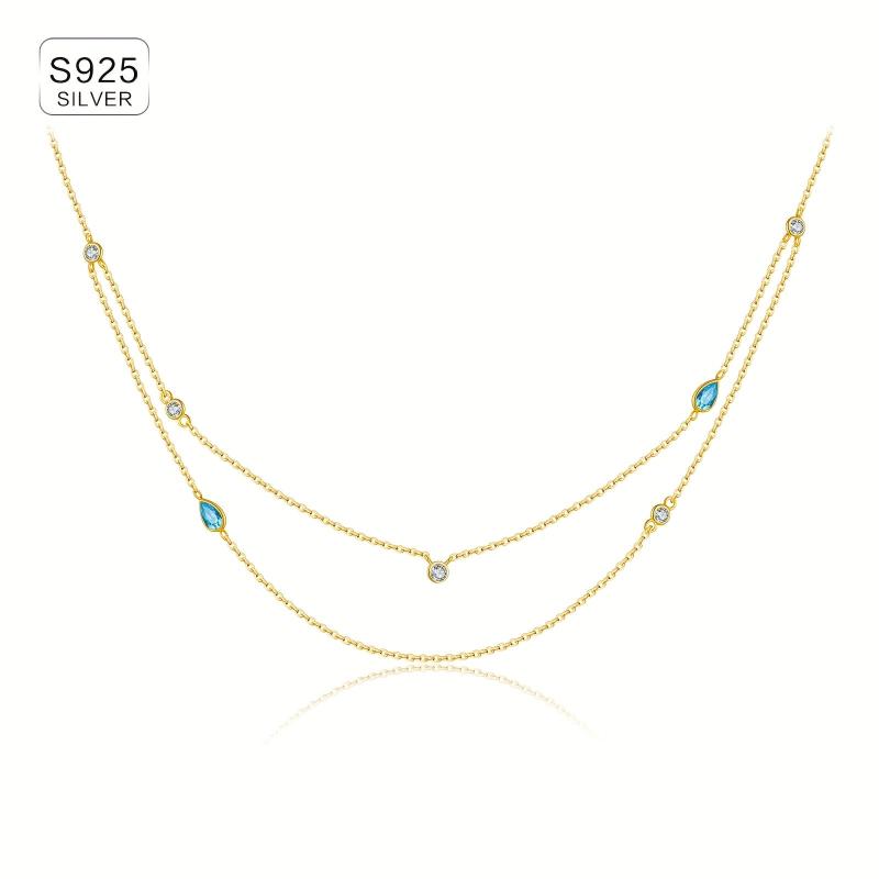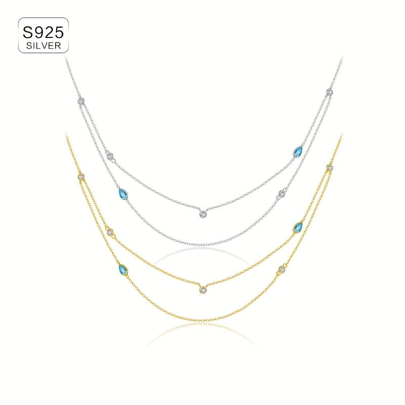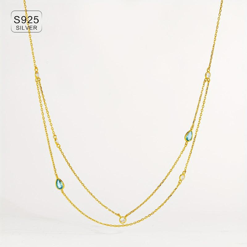 Elevate your style with this stunning double layer necklace crafted with 925 sterling silver. The cubic zirconia drop and round design adds a touch of elegance, perfect for daily wear or special occasions.