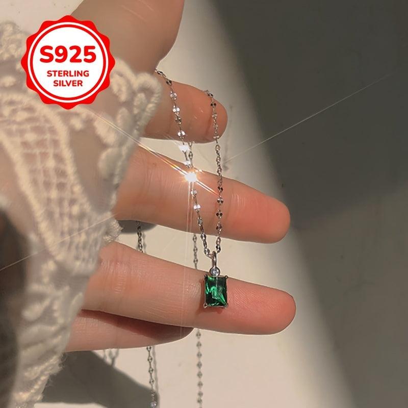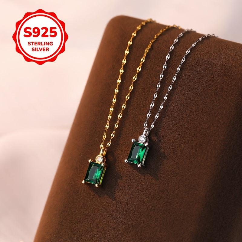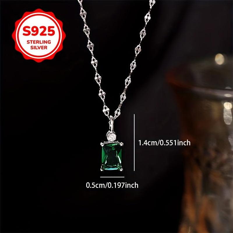 This stunning 925 silver necklace features a synthetic emerald square pendant. It is versatile and suitable for all seasons, making it a perfect gift for couples or BFFs.