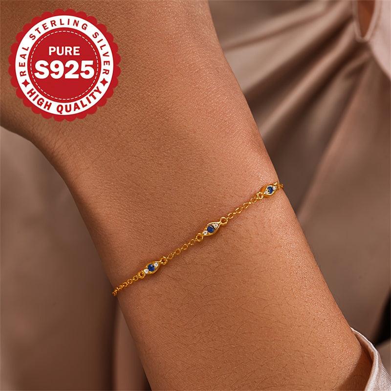 This 925 sterling silver bracelet features a gothic style evil eye design with synthetic zirconia. It weighs 1.5g and is perfect for daily wear and as a Valentine's gift for all seasons.