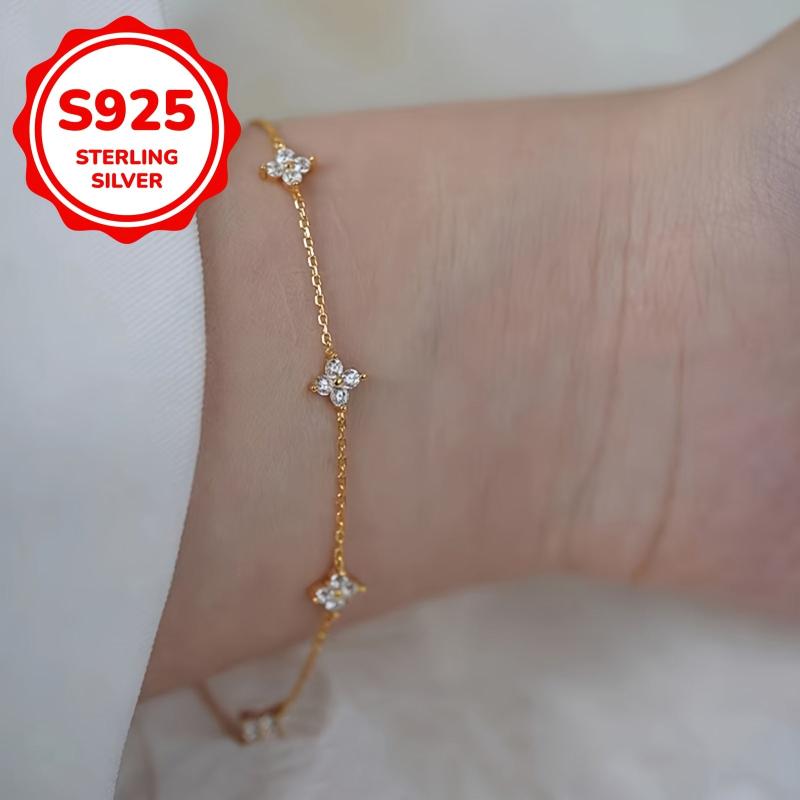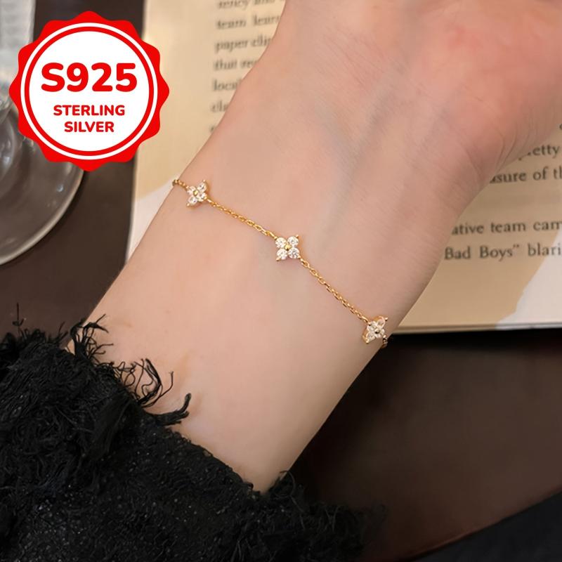 Beautiful 925 sterling silver bracelet adorned with sparkling zirconia stones in a flower design. This delicate piece is perfect for any occasion and makes a thoughtful gift.