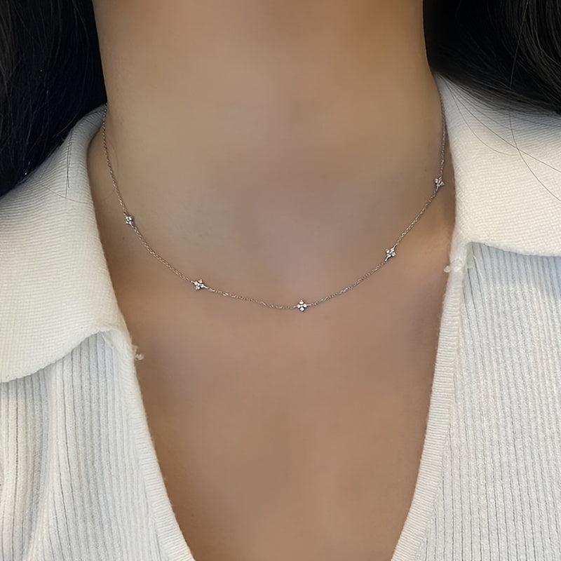 Shine this summer with this classic and versatile 925 silver necklace featuring a four-leaf clover design full of stars. Perfect for daily wear or special occasions.