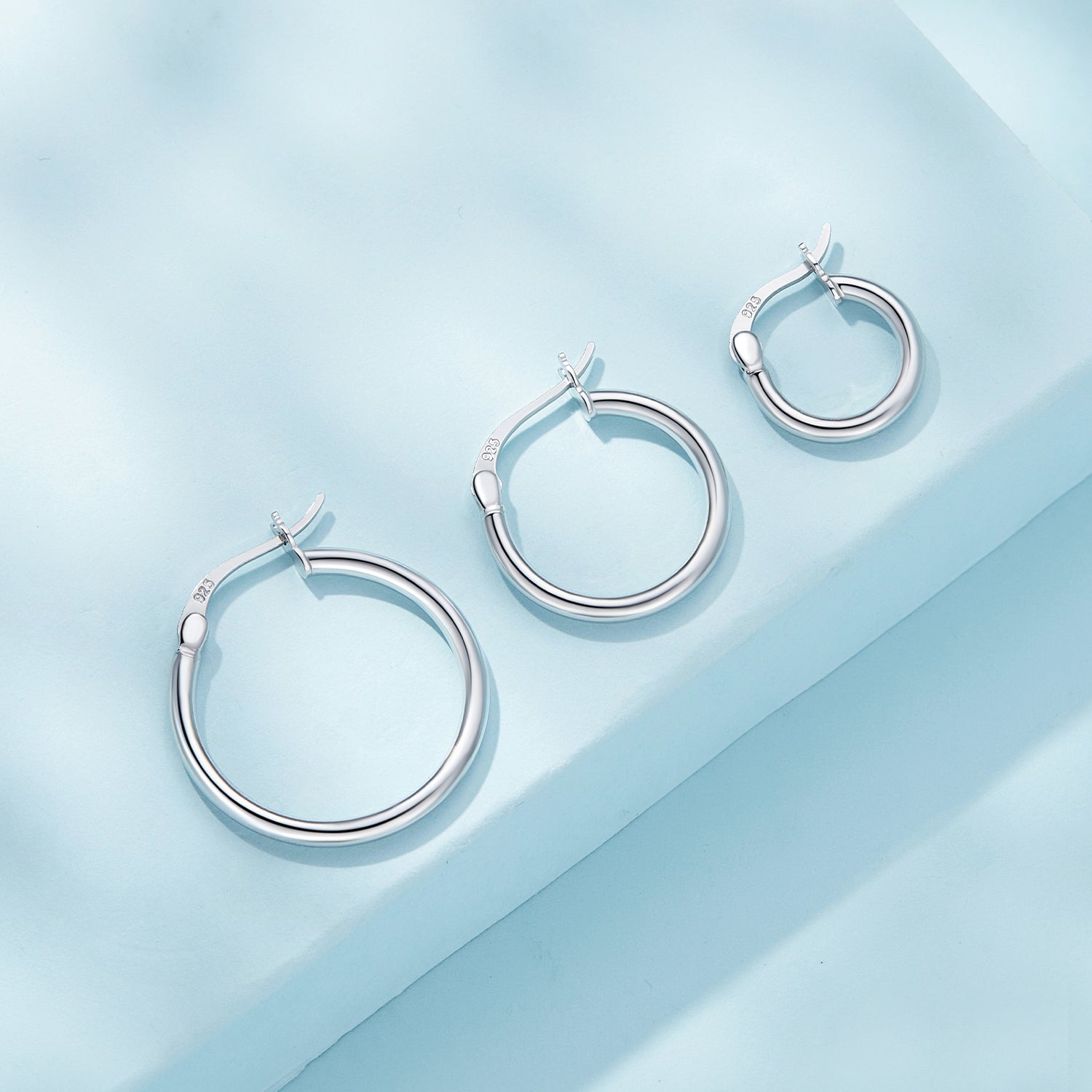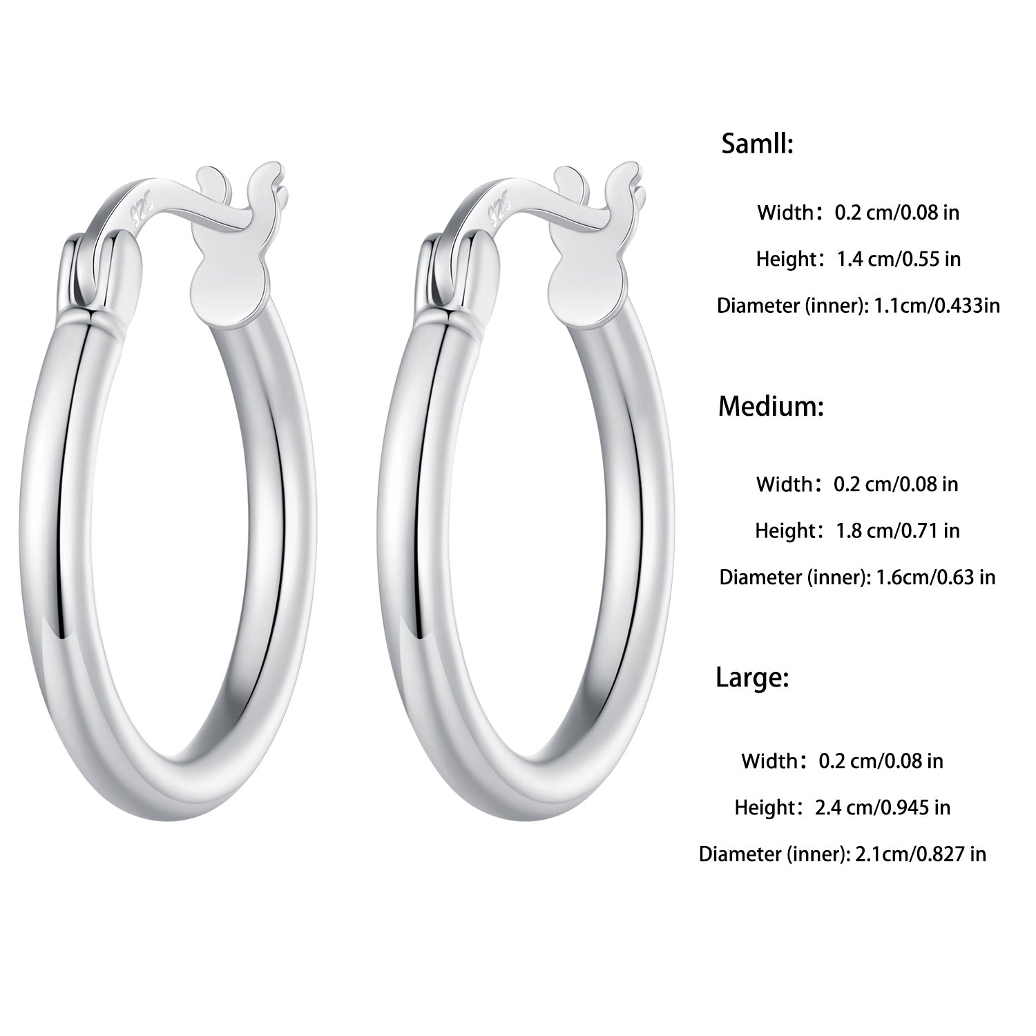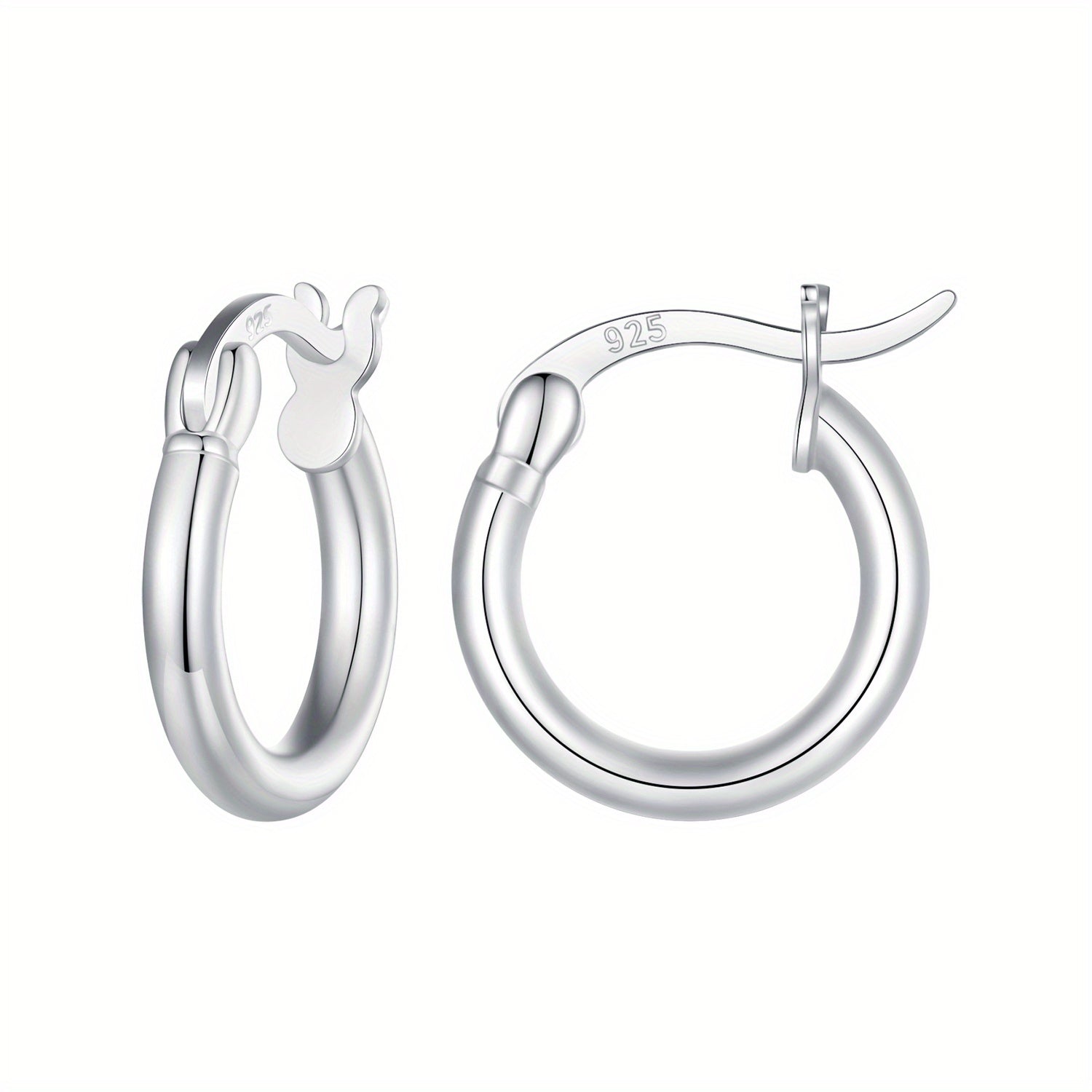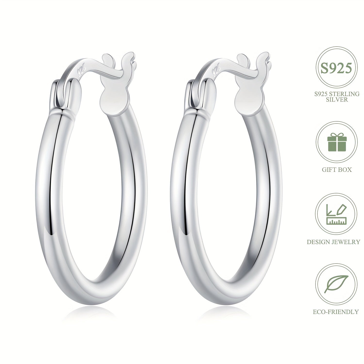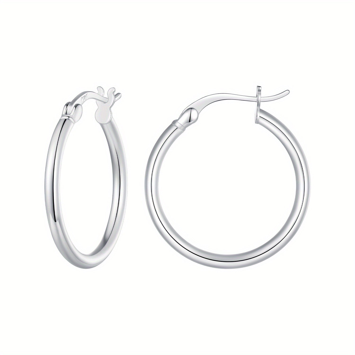 These elegant hoop earrings are made of sterling 925 silver with a glossy finish. They feature a minimalist style that is perfect for everyday wear. A great gift for any woman in your life.